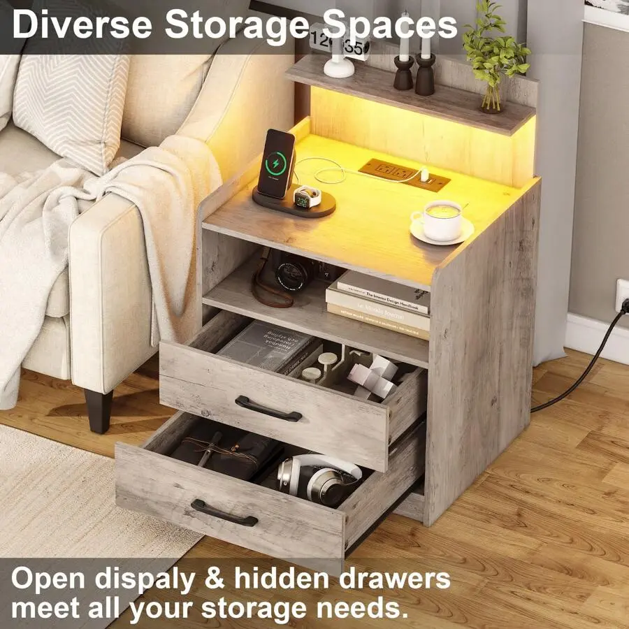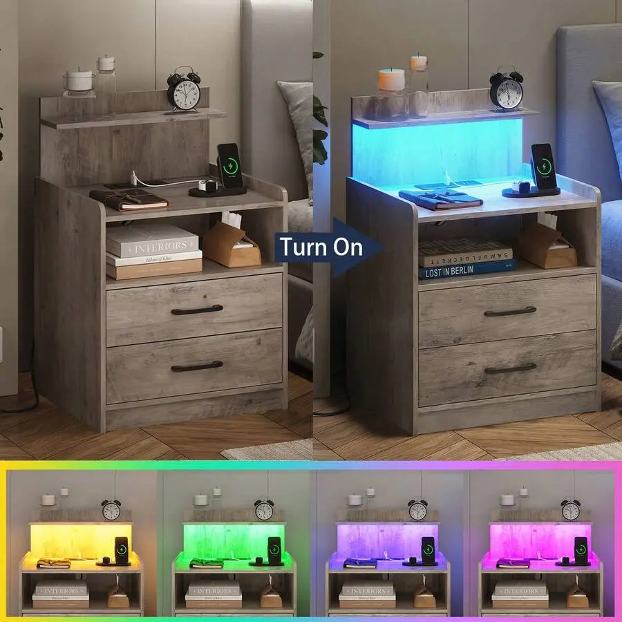 Equipped with stunning multi-color RGB LED lights and easy button control, this nightstand lets you freely adjust the light color to match your mood or decor.From soft warm tones to vibrant hues, you can transform the ambiance of your room in seconds, turning a simple bedside table into a decorative focal point that enhances your living experience day and night.