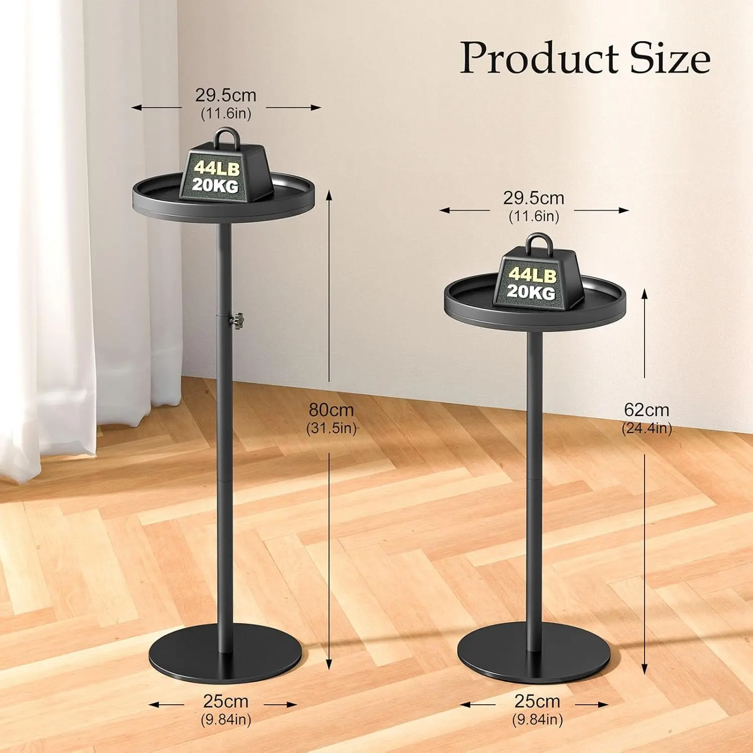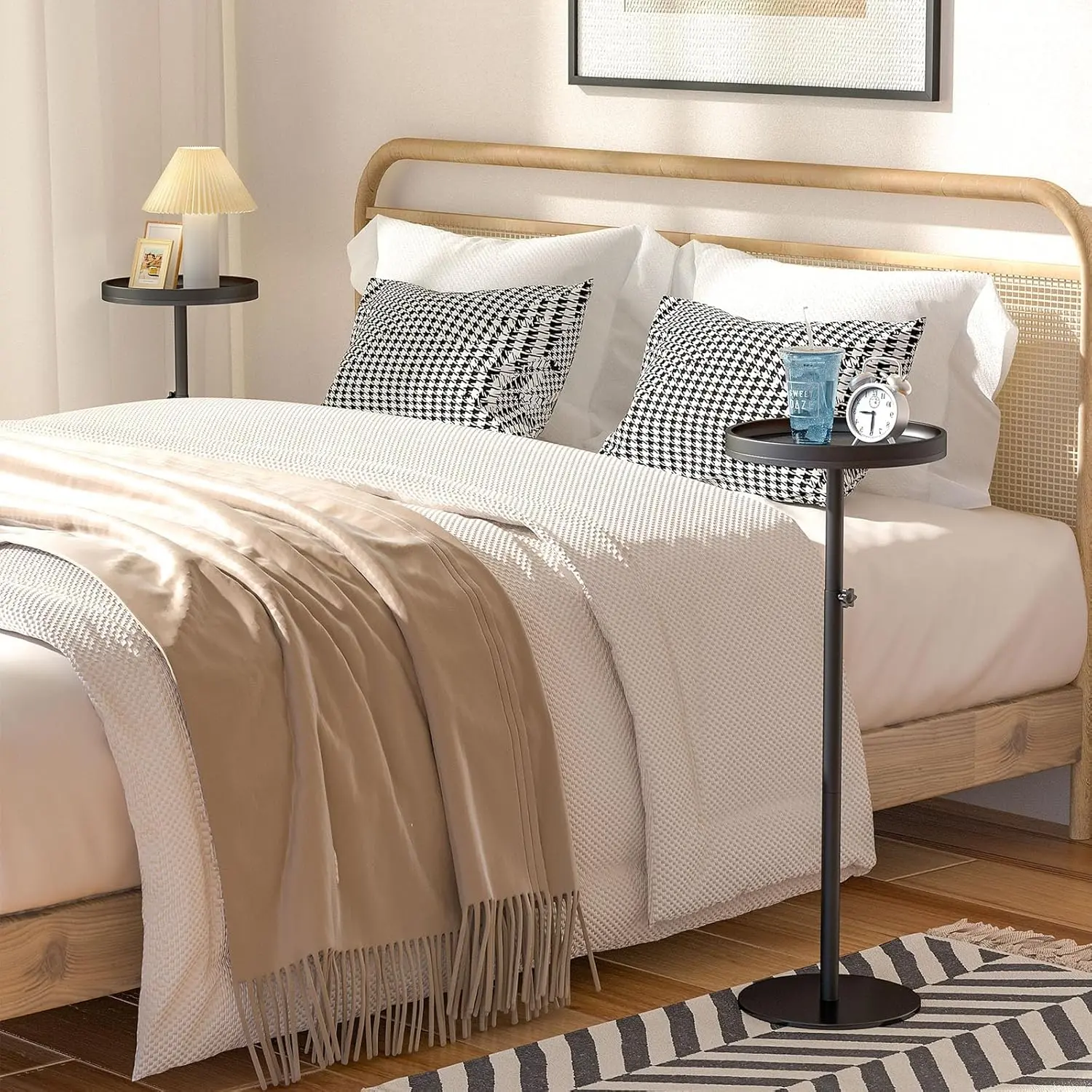 Height-adjustable beverage table, suitable for small spaces, martini table with weighted base, suitable for living room, bedroom, sofa, black