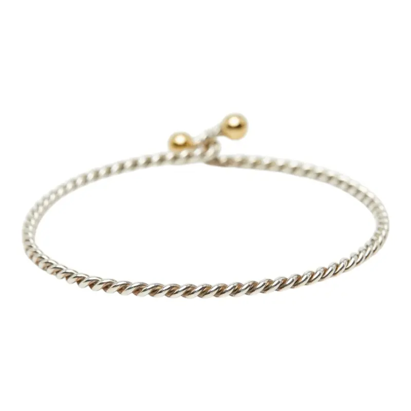 Pre-owned Tiffany & Co. 18K Yellow Gold (Au750) Small Leather Goods Tiffany&Co. Double Eye Twist Silver Au750 Bangle