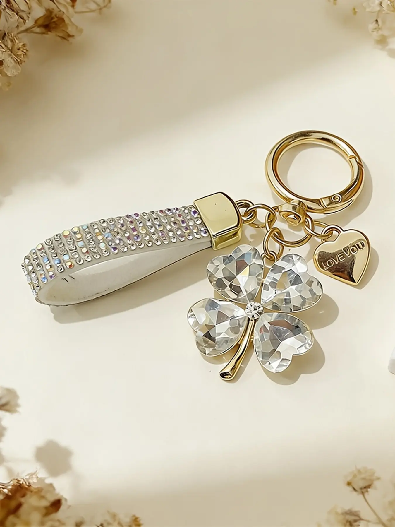 Heart-Shaped Love You Keychain, Four-Leaf Clover Lanyard, Lucky Flower Car Bag Pendant, Perfect Gift for Graduation, Valentine's Day, Mother's Day, Birthday
