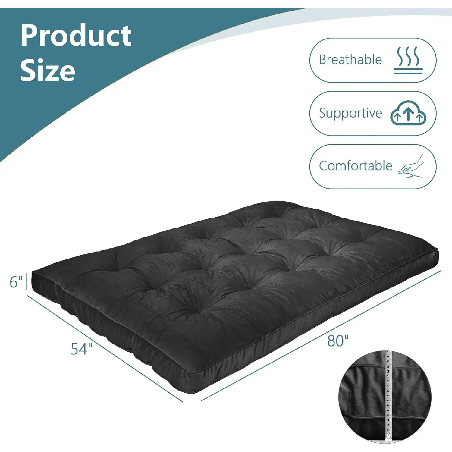 Flannel Floor Foldable for Adults,Futon Mattres Full Size 6",Floor Futon Mattress,High Density Shredded Foam Filling Mattress for Bedroom,Living, 54 x 80