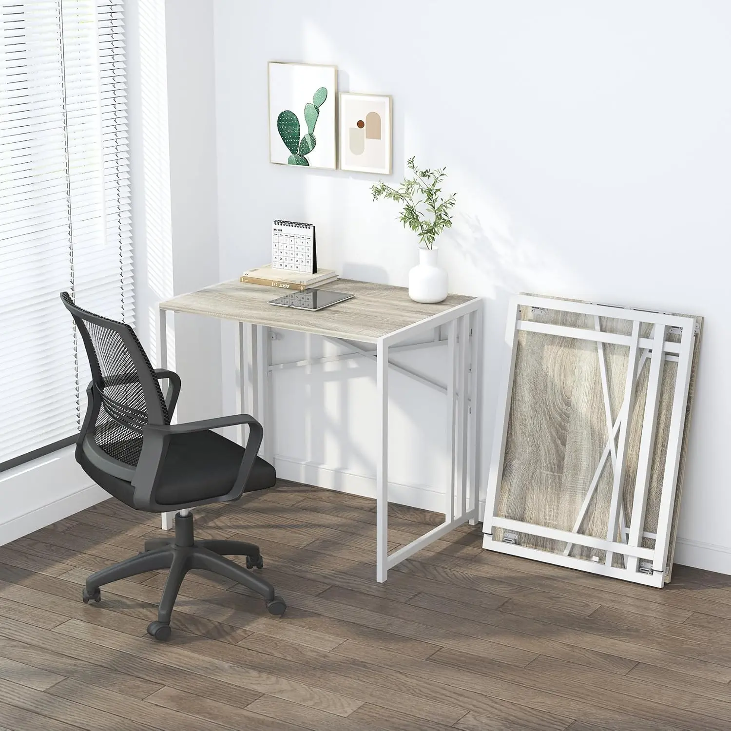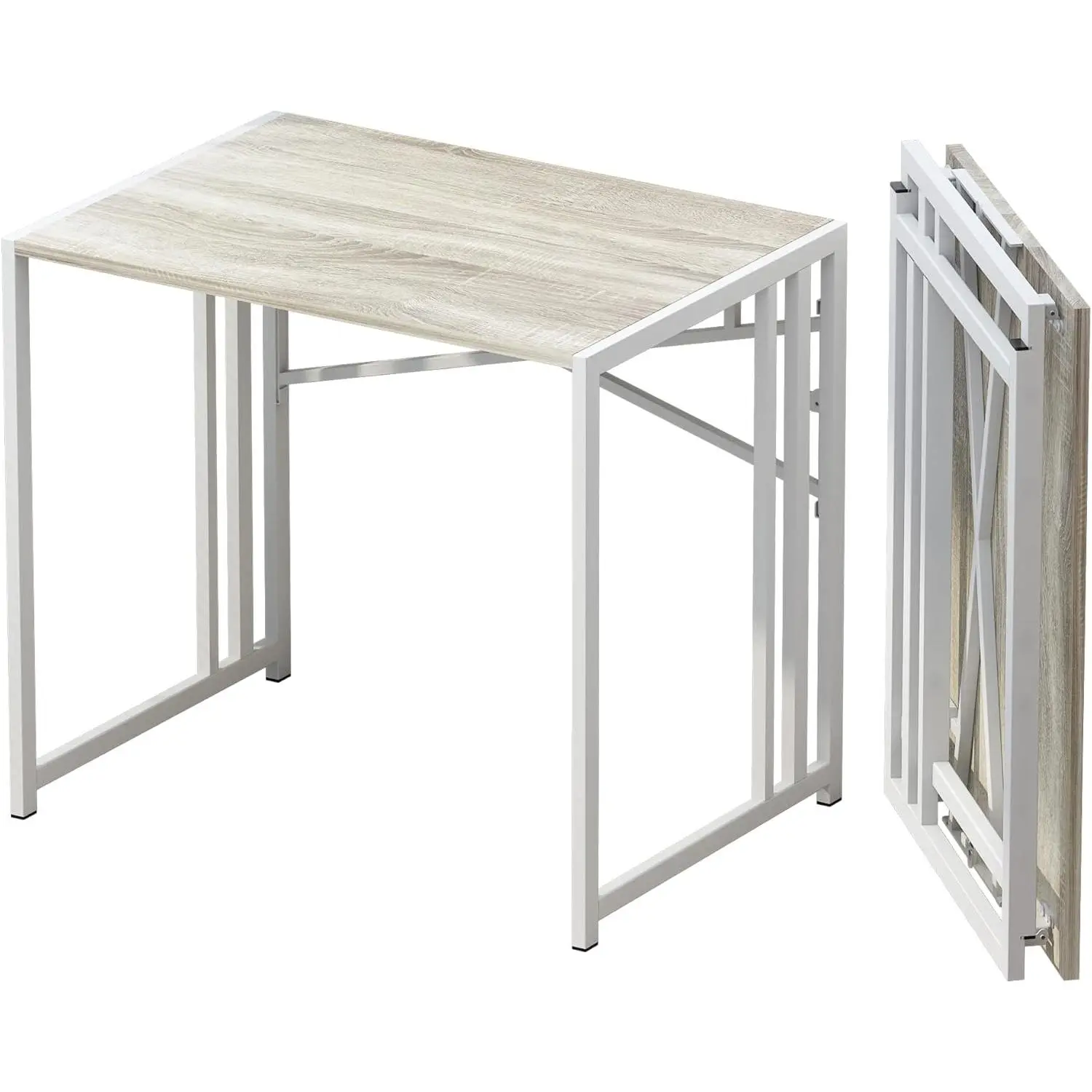 Small Folding Desk 32 inch, No Assembly Required Small Office Desk, Writing Gaming Computer Camping Desk, Beige