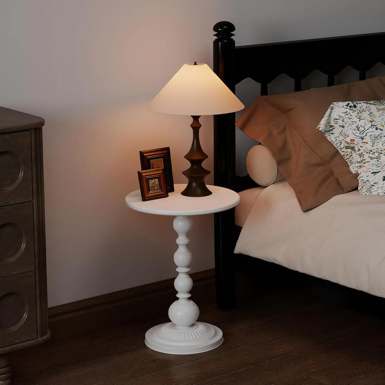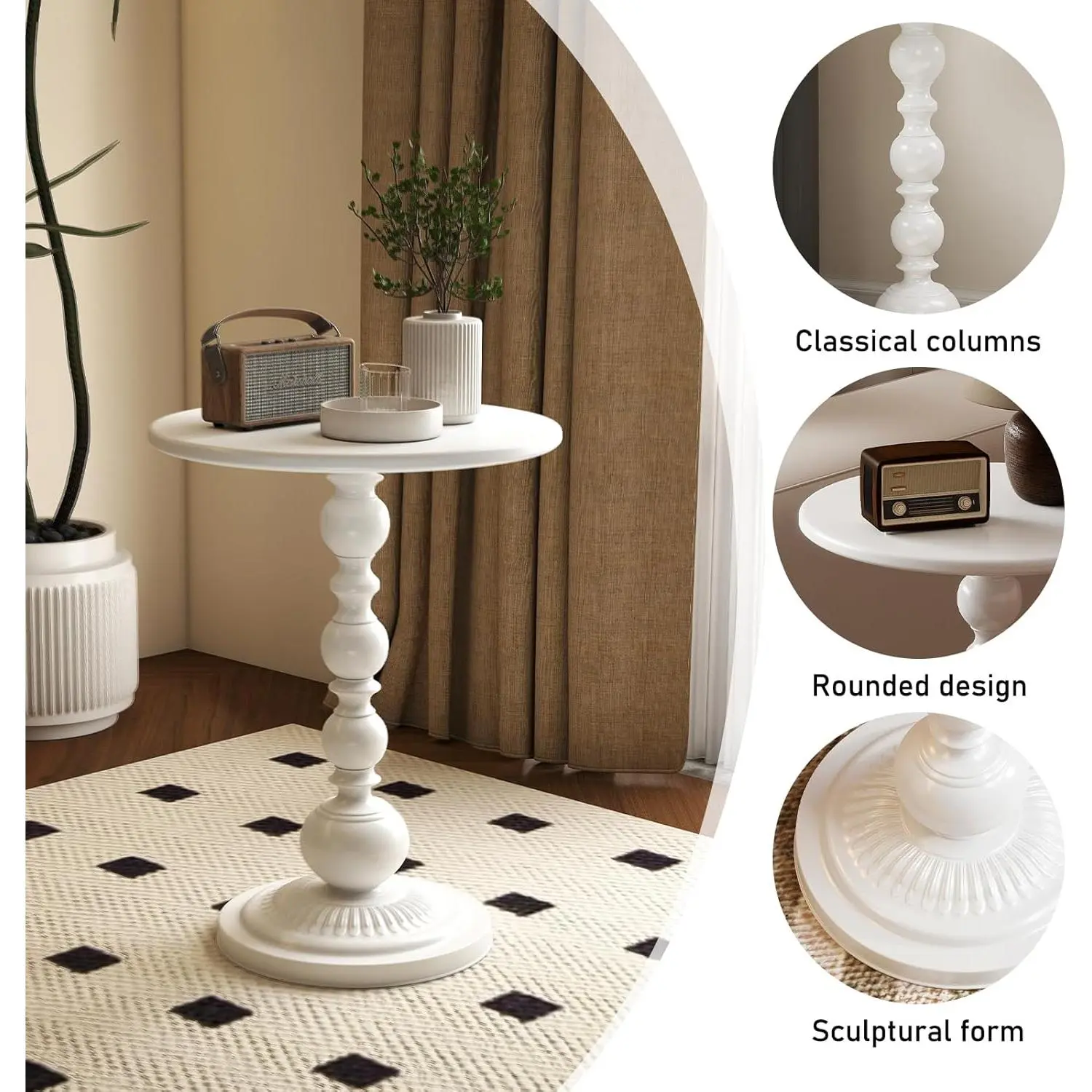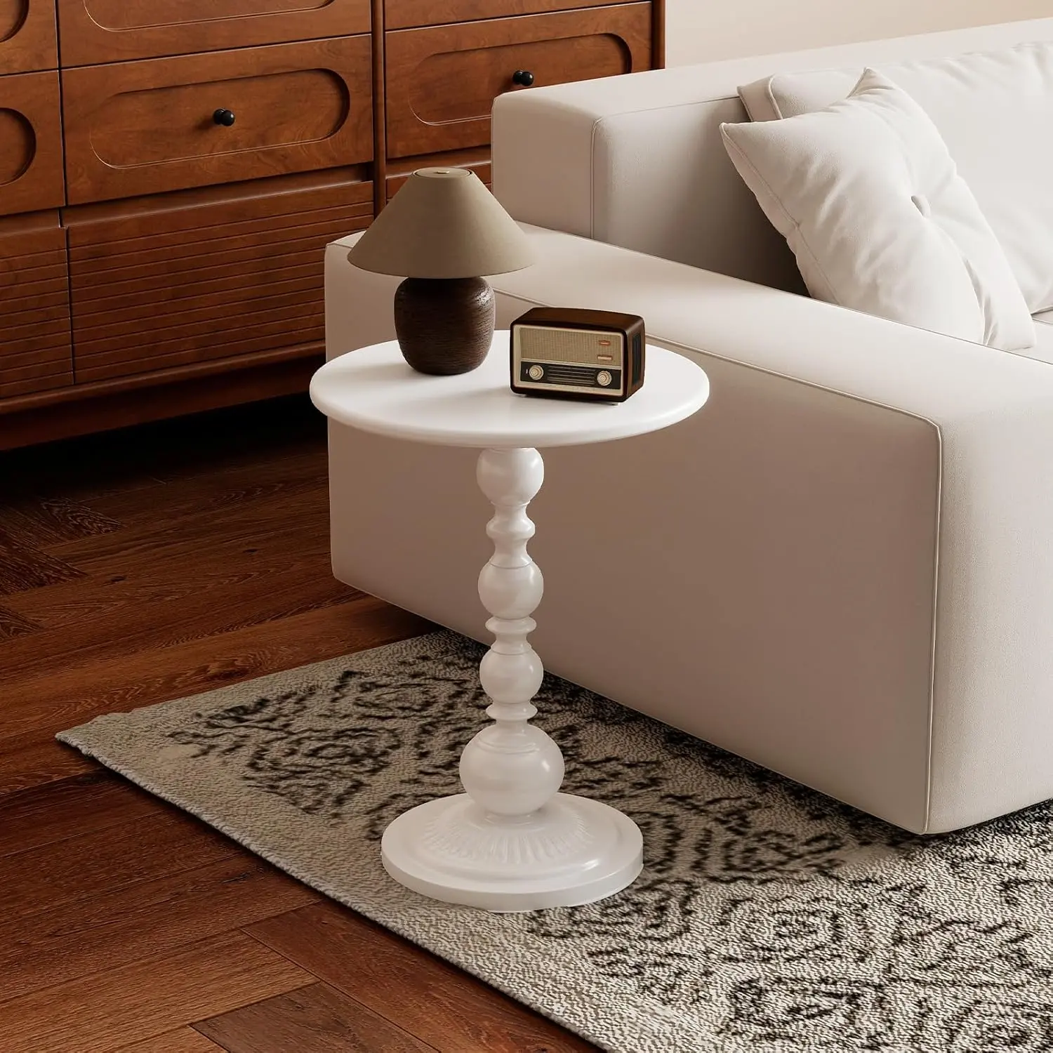 Metal side table, vintage matte black round side table, suitable for bedside or next to the sofa, small decorative table, suitable for living room corners, bedroom, terrace, and bar (light white)