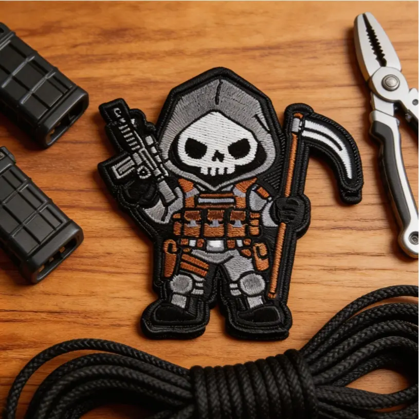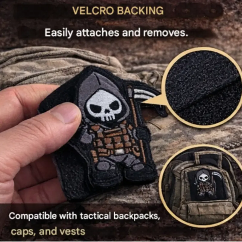 Cute Death Tactical Patch for Backpack Vest Jacket DIY Equipment, Embroidered Velcro Patch, Perfect for Bags Vests Jackets