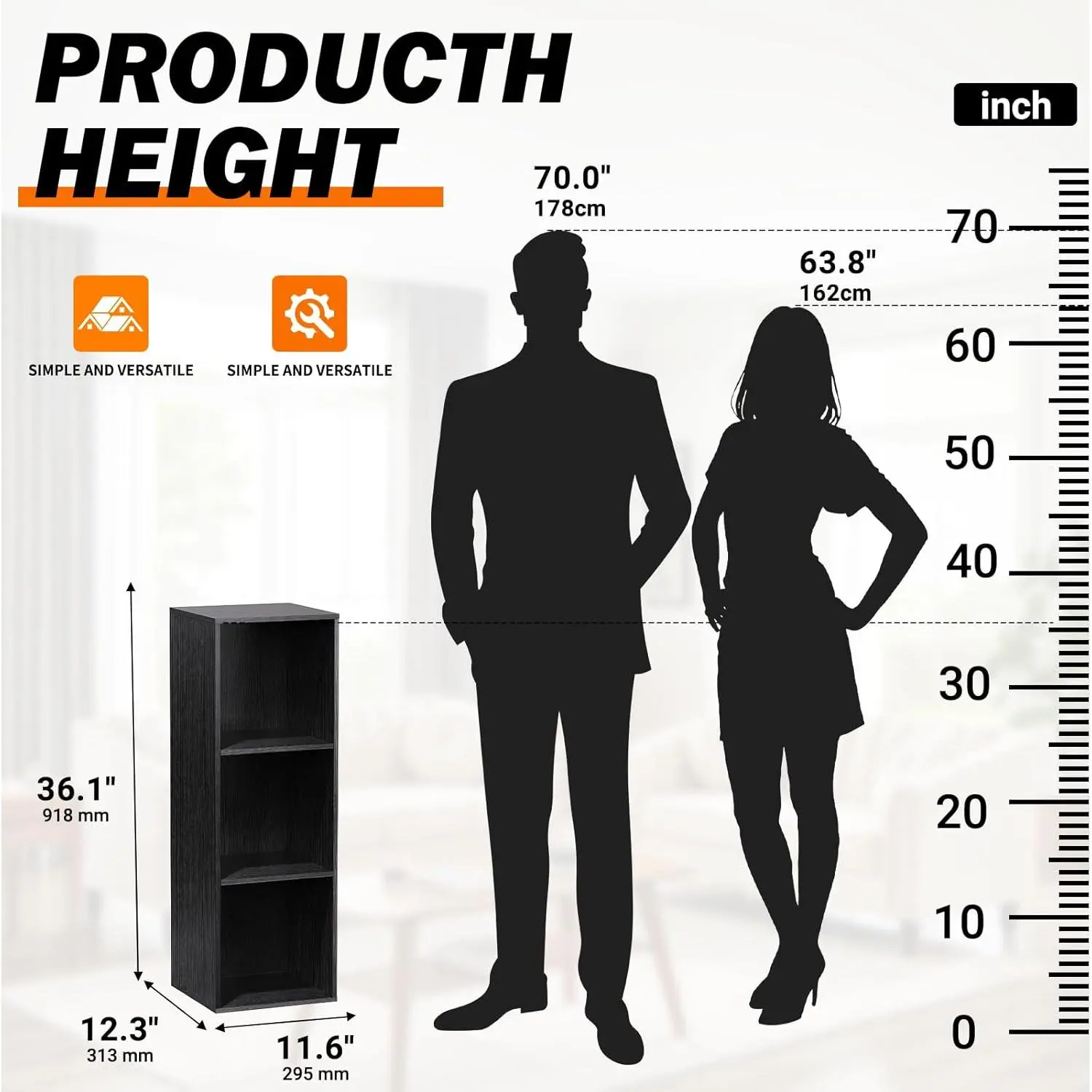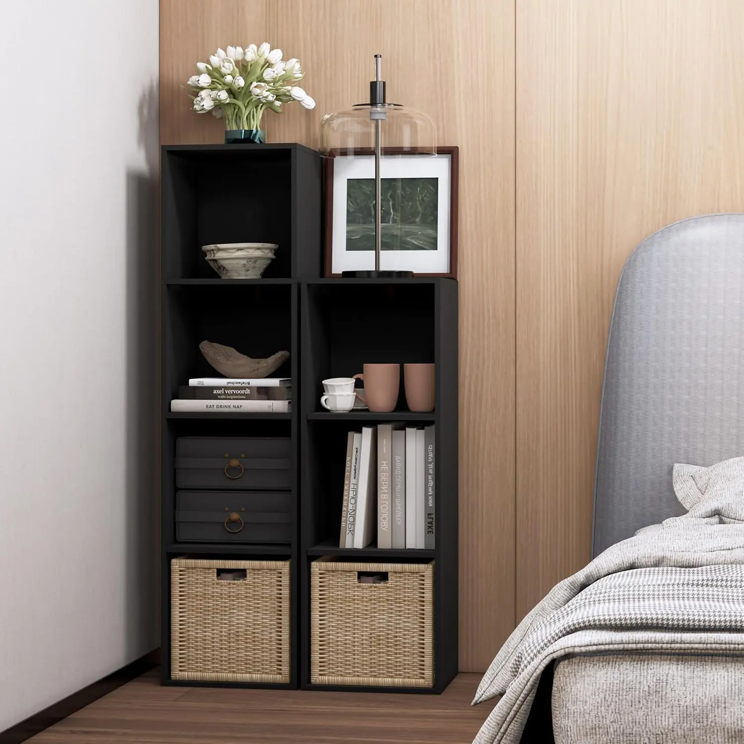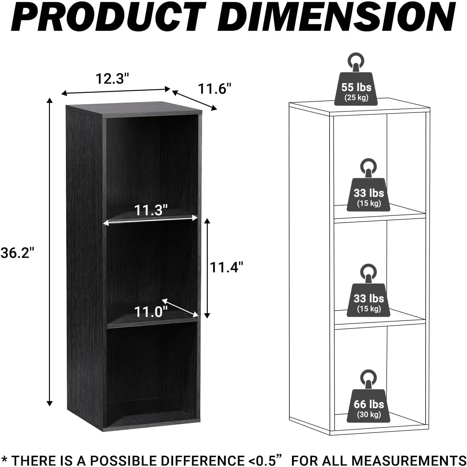 3-compartment storage cabinet, 3-tier cube low bookcase, freestanding storage display cabinet, three-compartment open bookshelf, suitable for home office (black, 3 compartments)