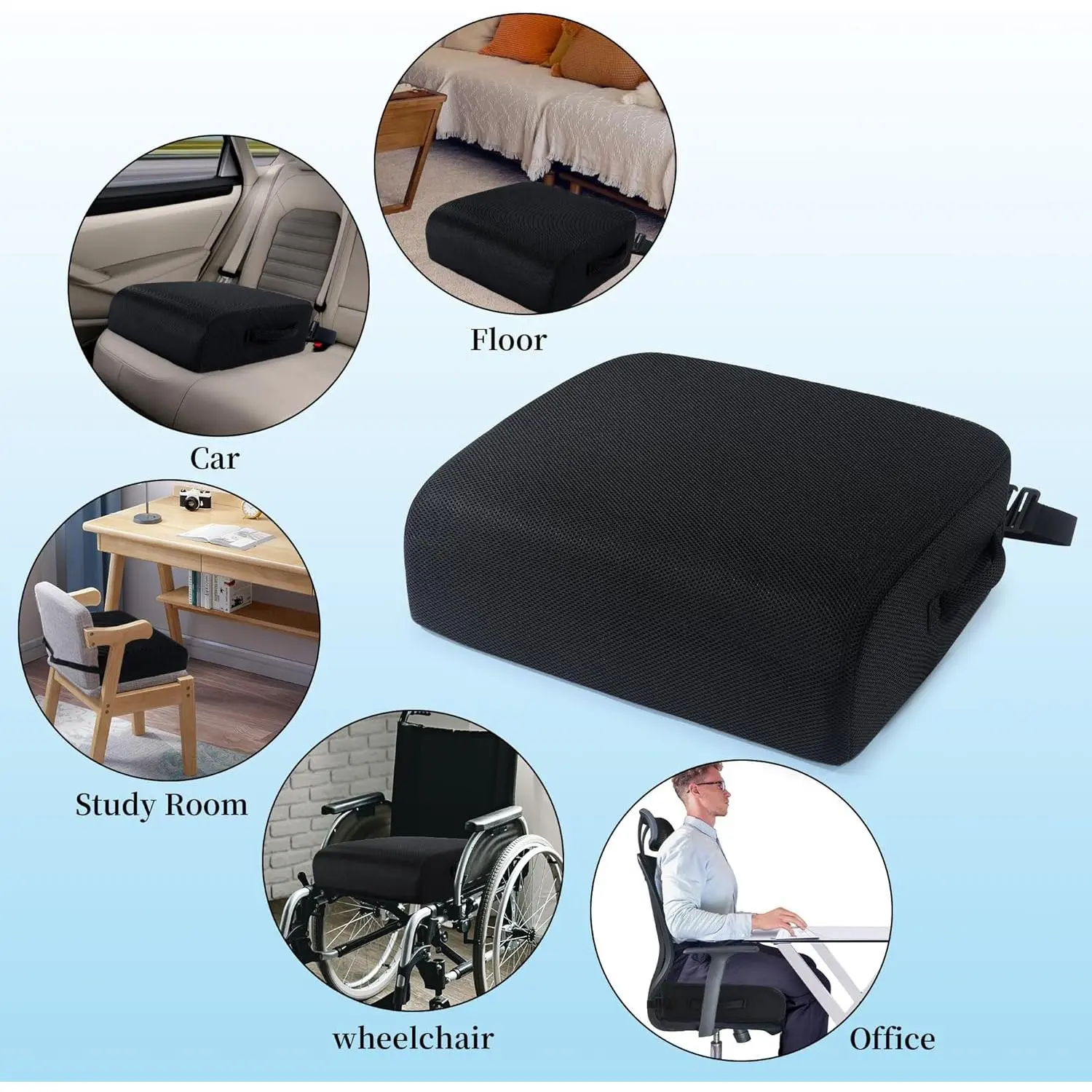 Extra Thick Chair Cushions,Office Chair Booster Seat Cushion to Raise Seat Height for Pain Relief, Non Slip Memory Foam Thick Cushion with Carry Handle (Black, 18 * 14 * 6)