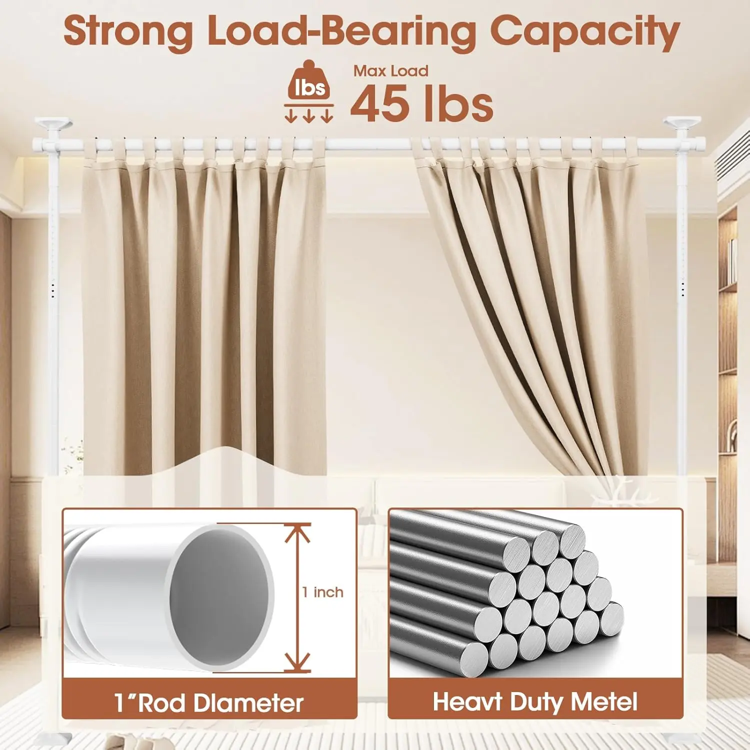 Room Divider No Drilling Curtain Rod Wall Divider for Room Separation, 4-10ft(H) 28-114inch(W) Adjustable, Heavy Duty Partition Space Separator Freestanding Tension Curtain Stand, White