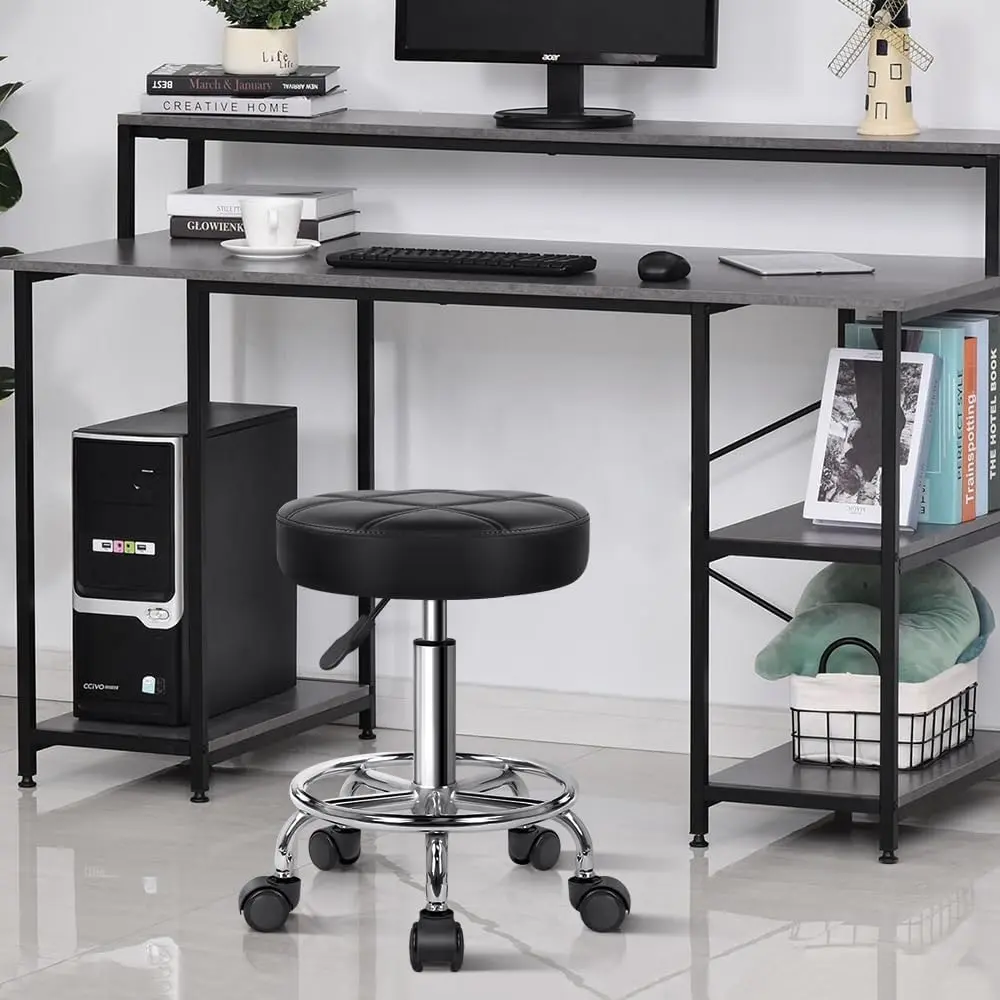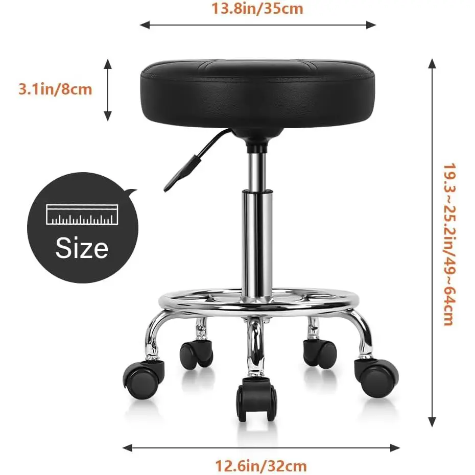 Round Rolling Stool Chair PU Leather Height Adjustable Swivel Drafting Work SPA Shop Medical Salon Stools with Wheels Office Chair Small (Black)