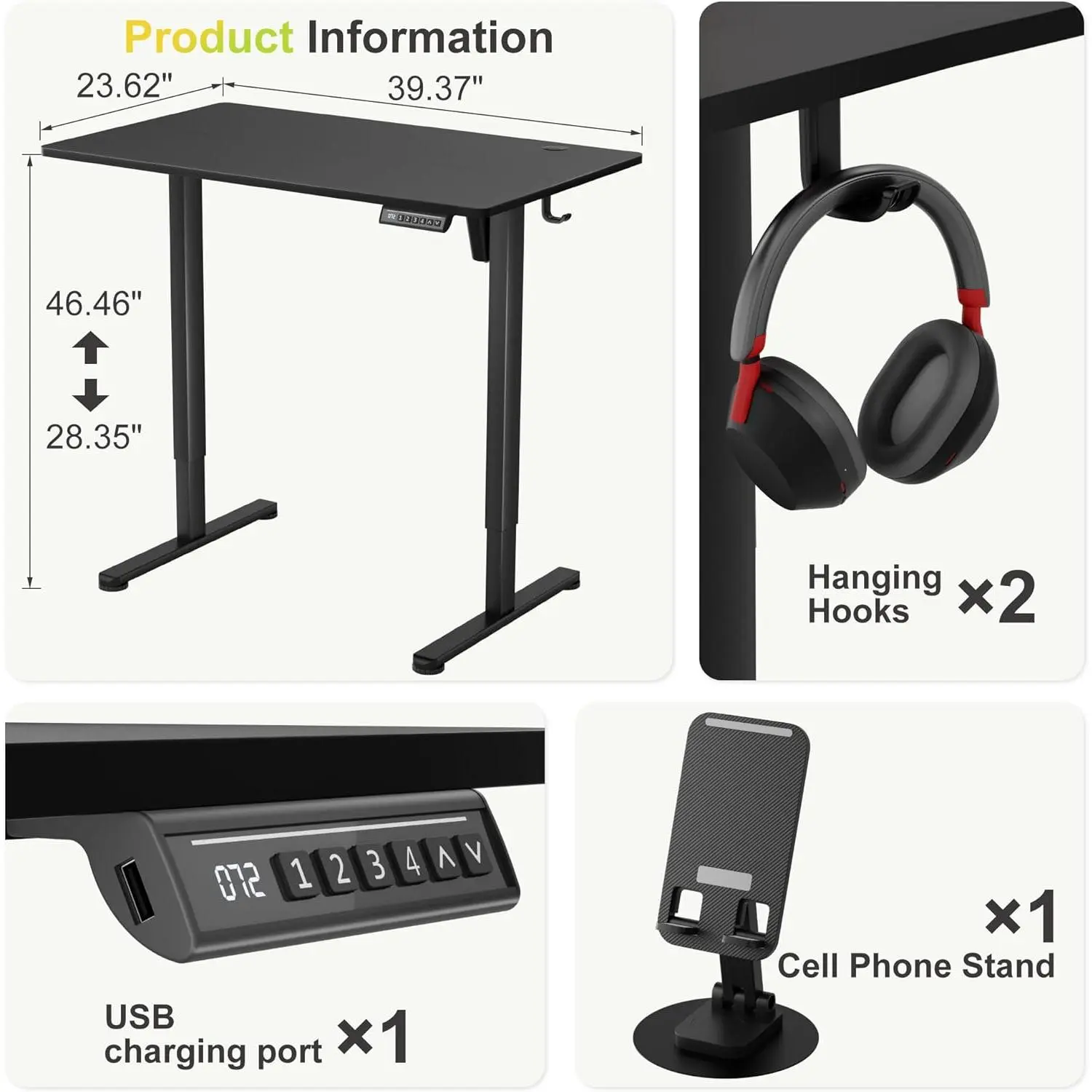 Electric Standing Desk, 40 x 24 Inches Sit Stand up Desk, Sit Stand Height Adjustable Home Office Desk with 4 Height Position Memory - with Splice Board (Black, 40)