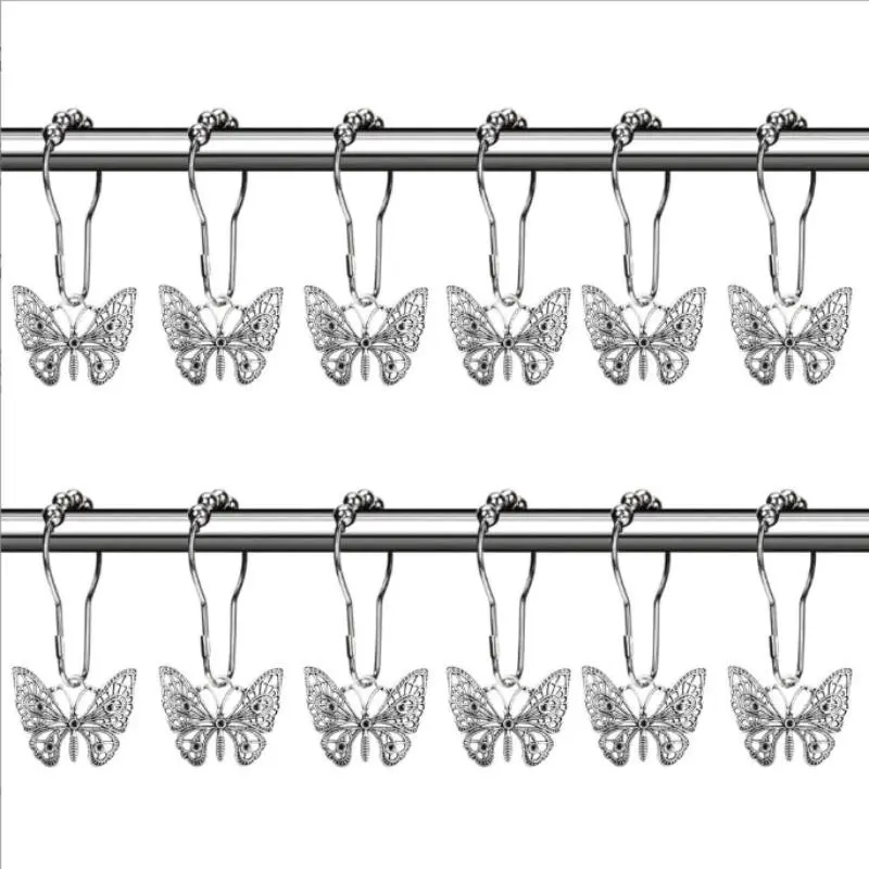 6 Butterfly Decorative Shower Curtain Hooks, Home Shower Ring Accessories, Rust-Resistant Metal Curtain Rings, Durable Bathroom Essentials
