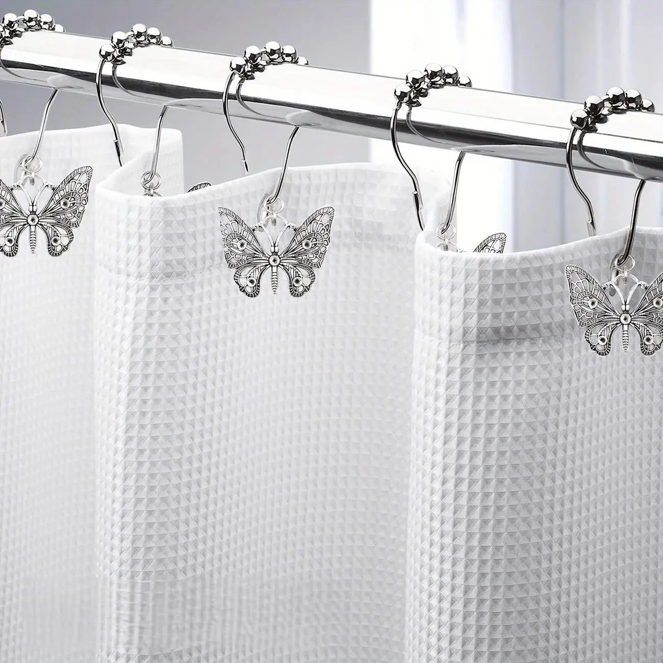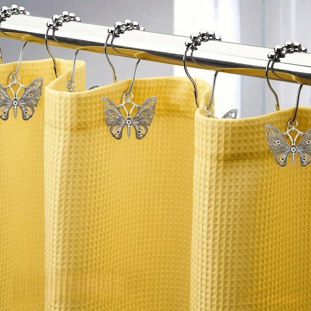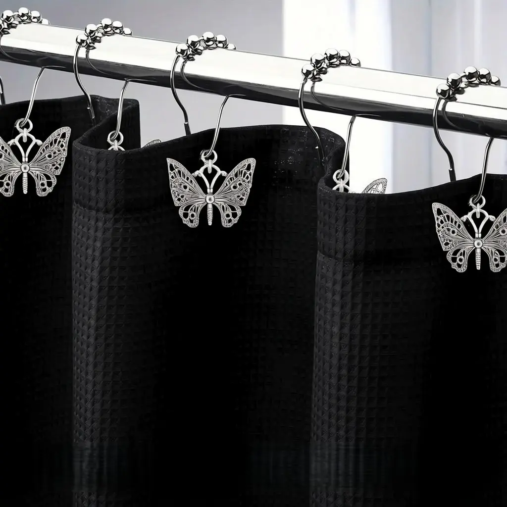 【Butterfly Design】: Features unique butterfly-shaped hooks for decorative appeal while holding shower curtains securely.