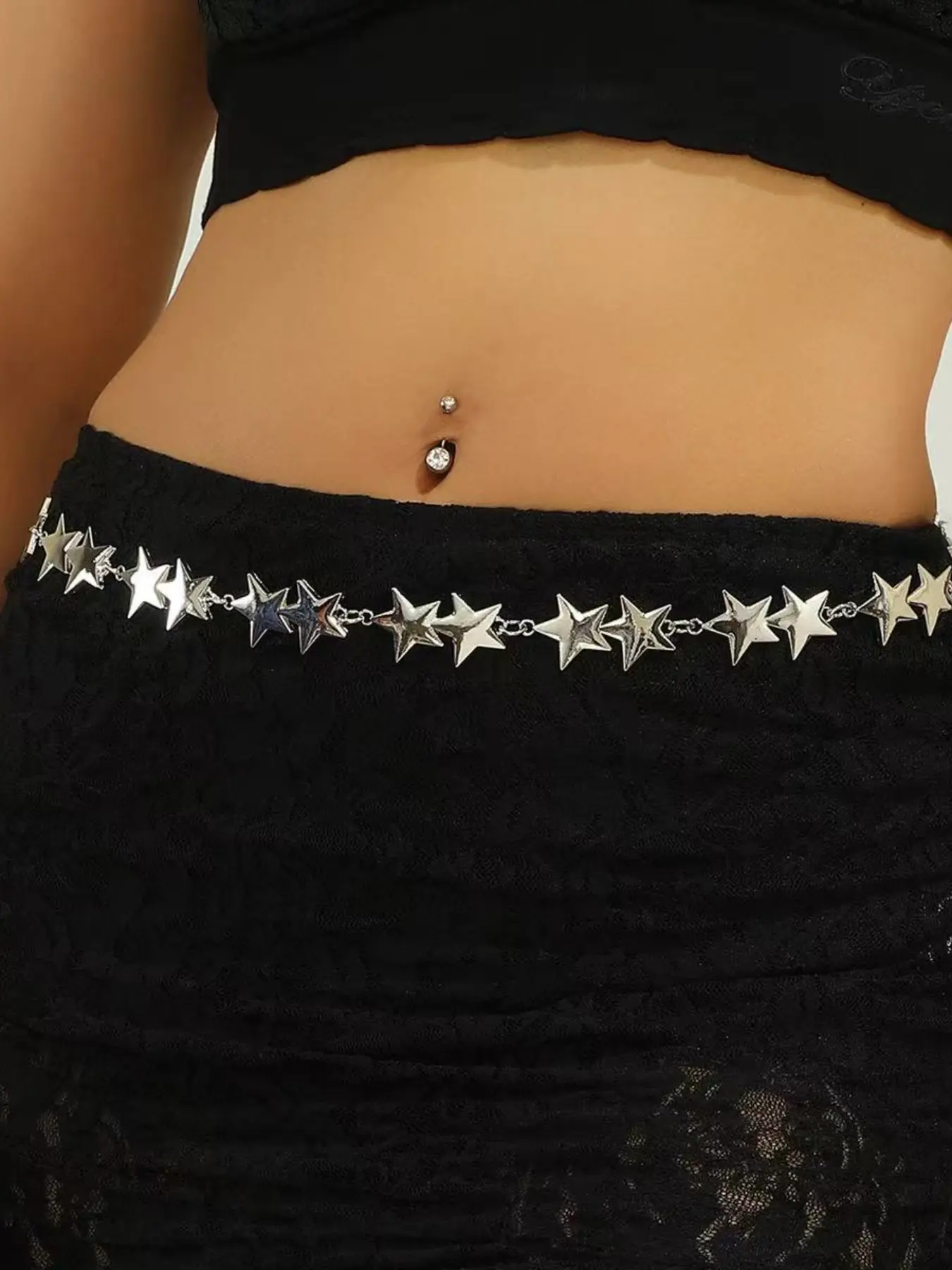 Adjustable Star Metal Chain Waist Belt, Rose Tail Design, Punk Style Fashion Accessory, Unique Hip-Hop Decorative Waistband