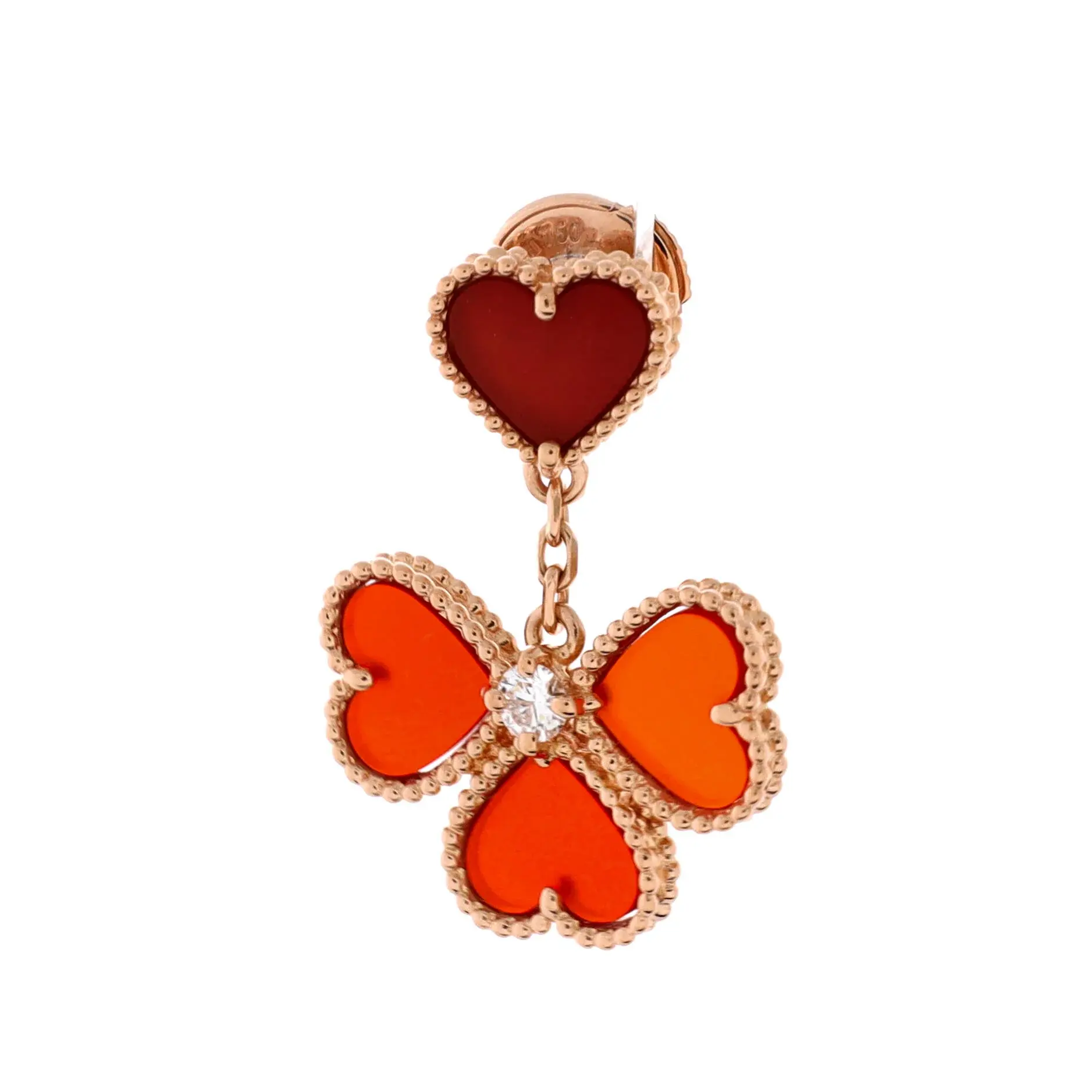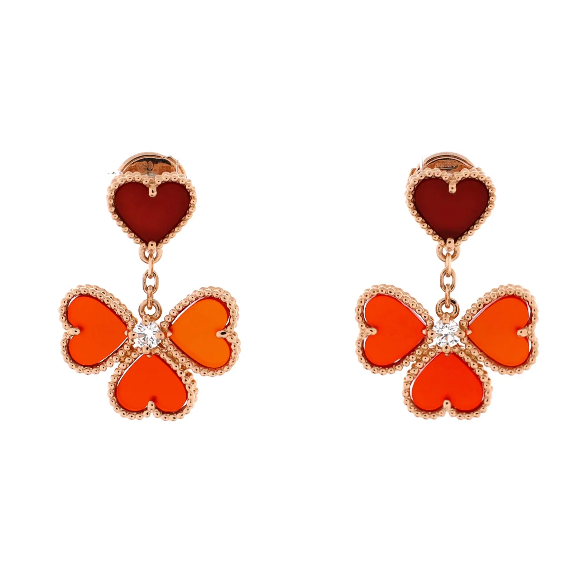 Model: Sweet Alhambra Effeuillage Heart Earrings 18K Rose Gold with Carnelian and Diamonds