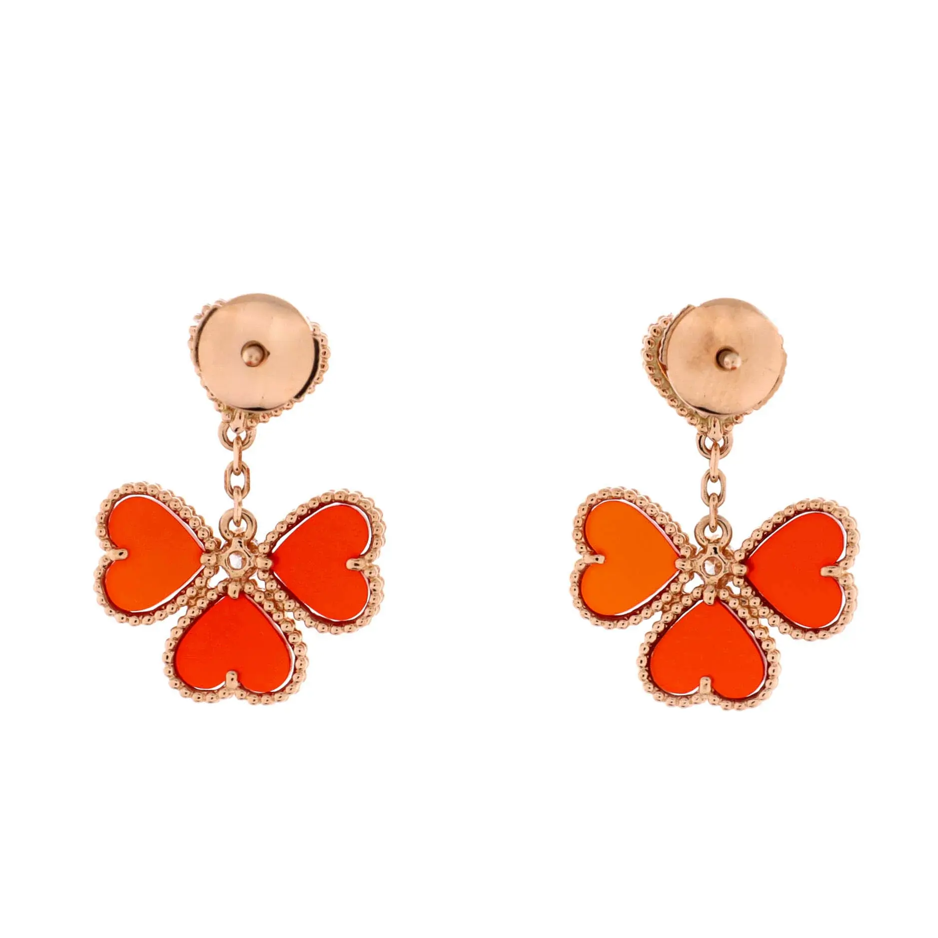 Pre-owned Van Cleef & Arpels Sweet Alhambra Effeuillage Heart Earrings 18K Rose Gold with Carnelian and Diamonds by Rebag