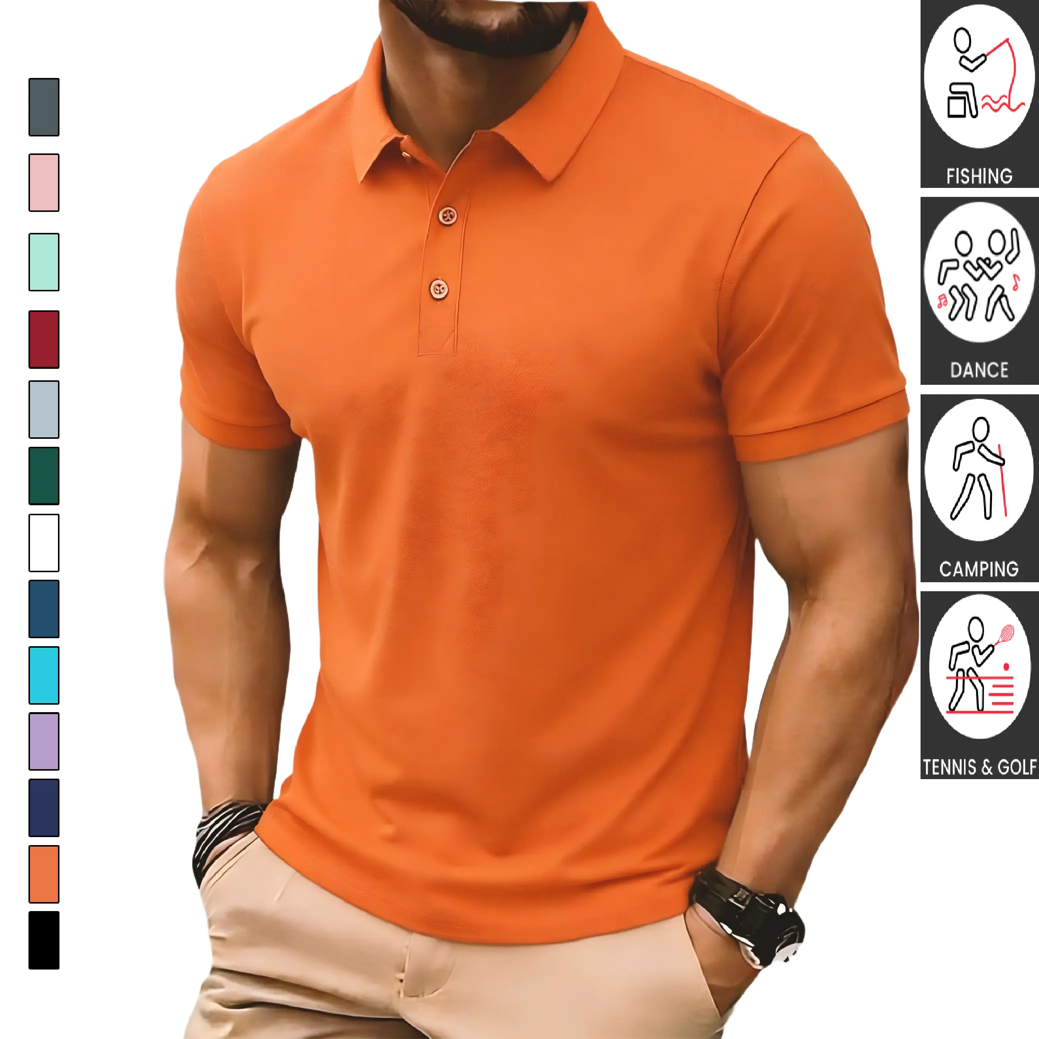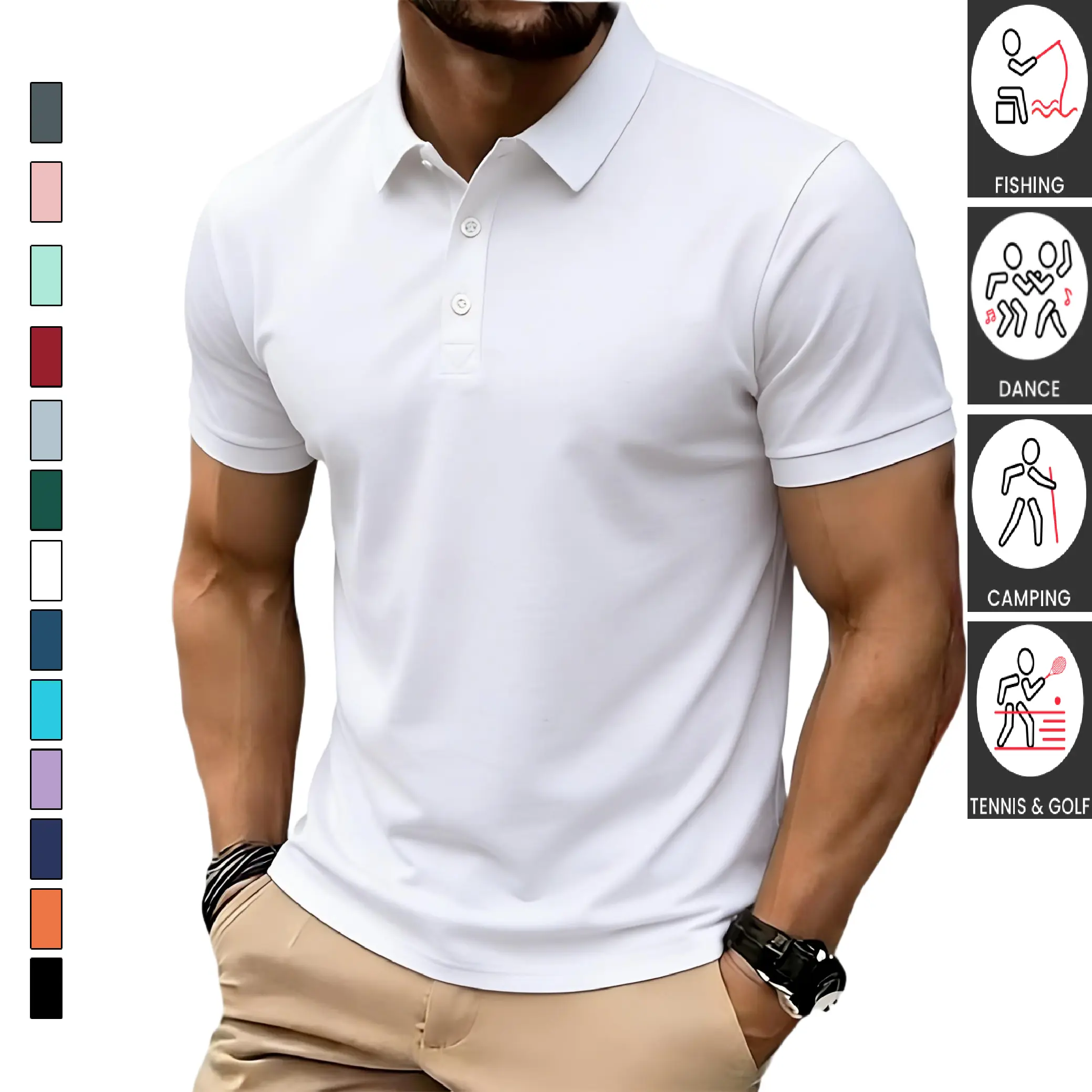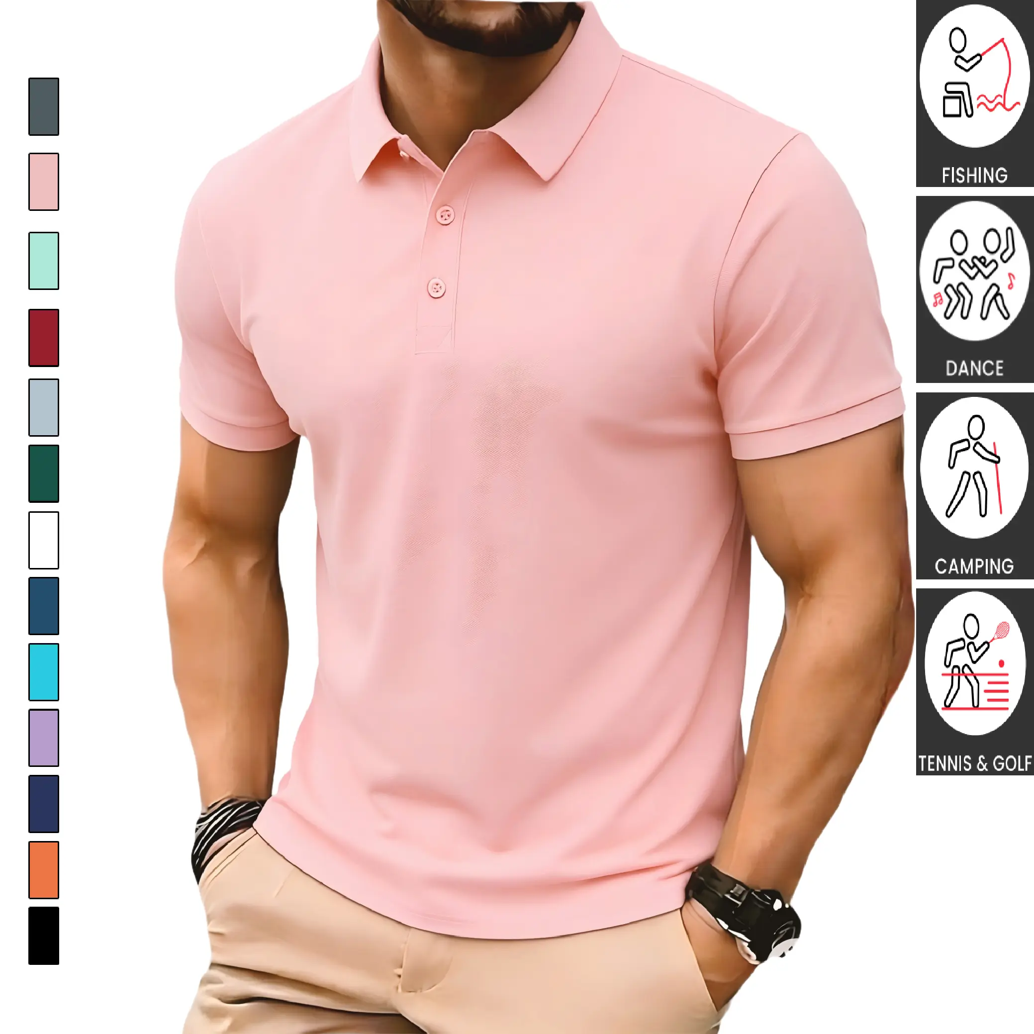 TOOTD Collection - Men's Casual Polo Shirt - Stretch fabric | 200+ GSM | Elastic Cuffs | Solid Color Basic | Men's Bowling & Golf Clothing | Suitable for Everyday Wear | Summer Business Style