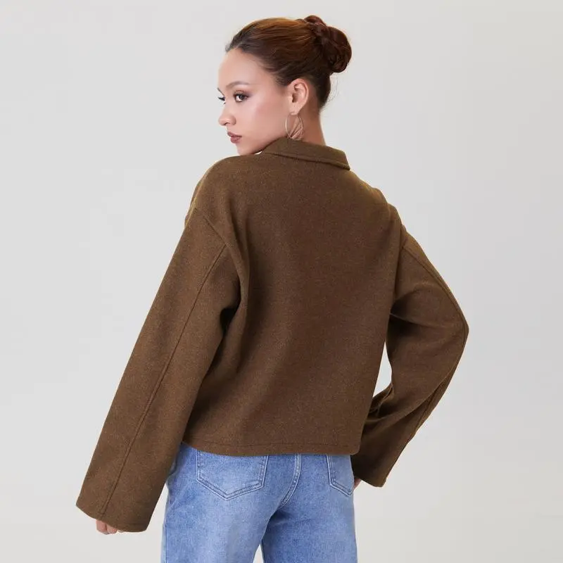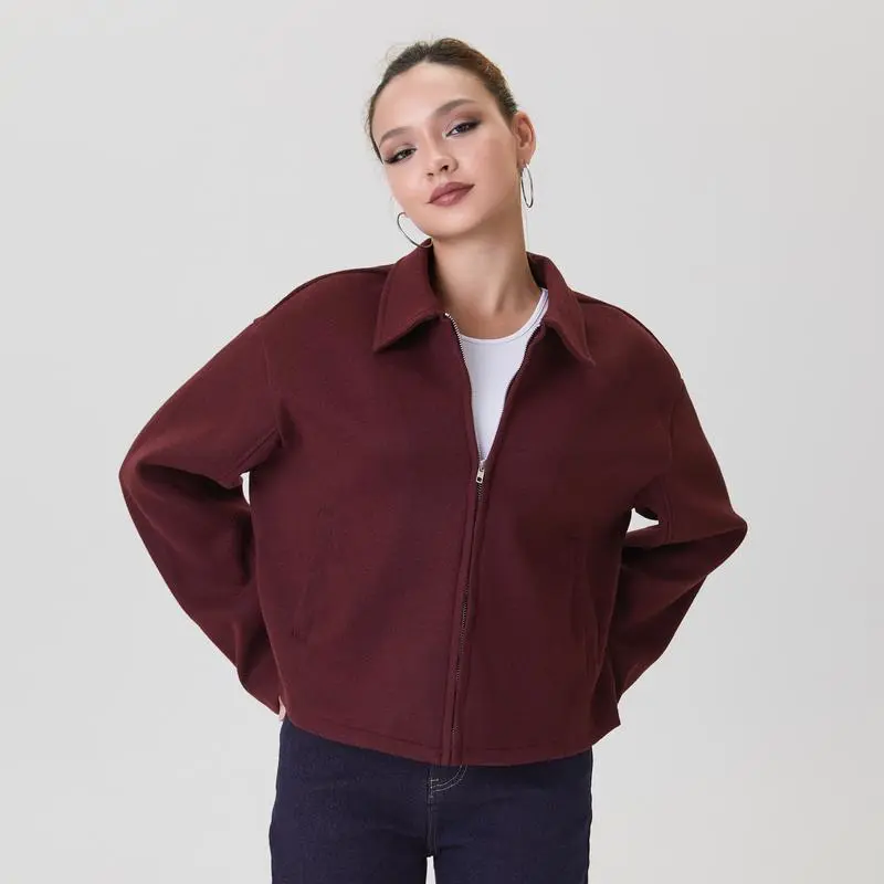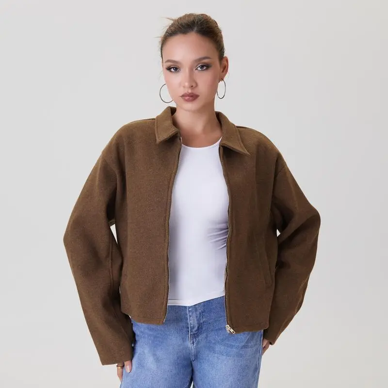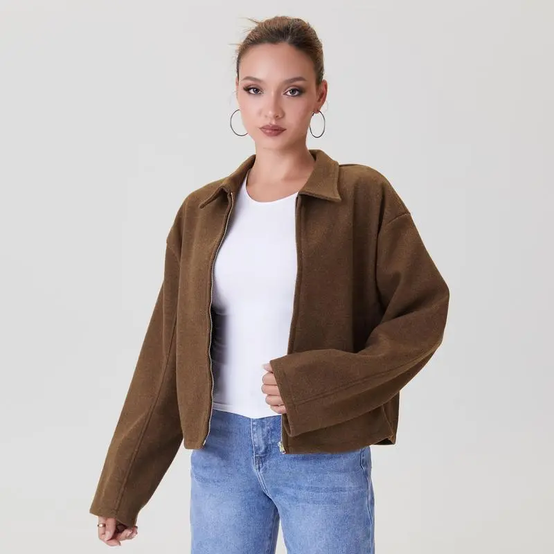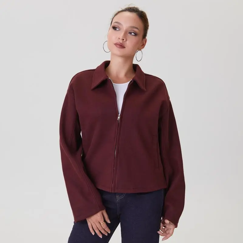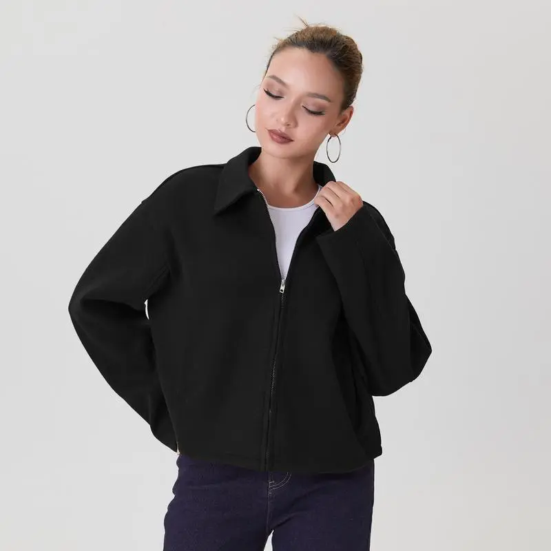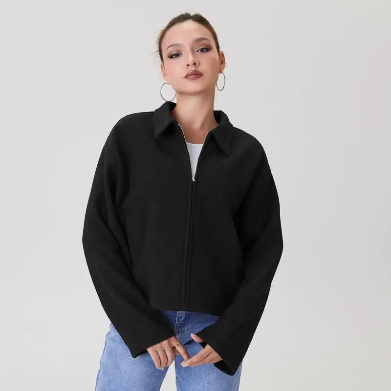 KatchMe Women's Basic Solid Color Collared Zipper Long Sleeve Cozy Outerwear, Versatile Side Pocket Cardigan for Fall & Winter, Comfortable Womenswear