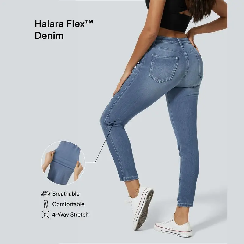 Halara Flex Mid Low Rise Zipper Pockets Casual Skinny Jeans