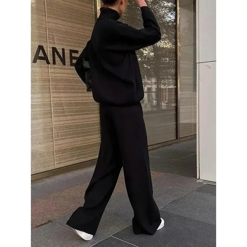Women's Solid Turtleneck Tops & Wide Leg Pants Set ✨ Elevate your casual wardrobe with this Women's Solid Turtleneck Tops & Wide Leg Pants Set. Perfect for daily casual occasions, this 2-piece set includes a cozy long sleeve top and trousers. Ideal for fall, it's a must-have for downtown girl clothes. Available in black, this set offers versatility and style. Women's Clothing for Fall This set is designed for women who love comfortable and fashionable fall clothes. It's a great addition to your wardrobe for casual outings.