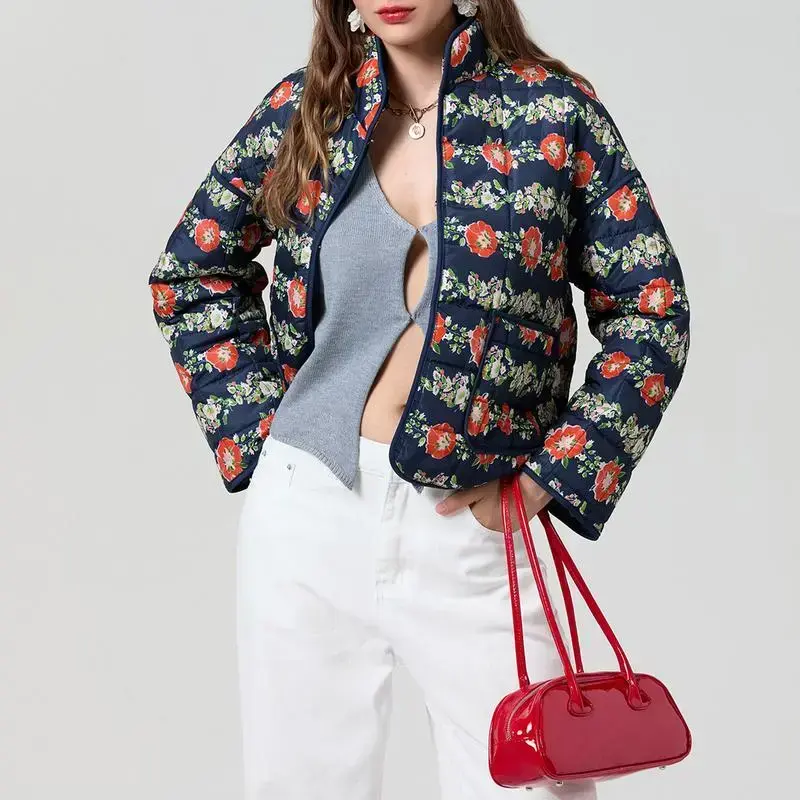 WomenY2kCroppedQuiltedJacketsFloralPrintOpenFrontLightweightPufferJacketPaddedQuiltedCardiganCoats
