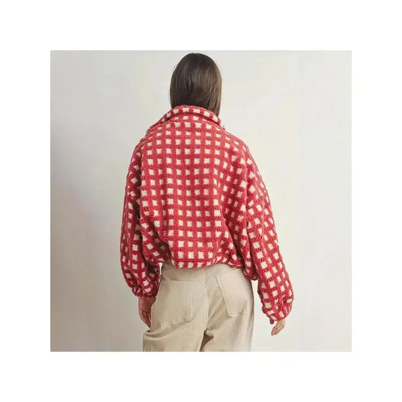 Women's Plush Red and White Houndstooth Coat ✨ Elevate Your Style ✨ Perfect for All Occasions