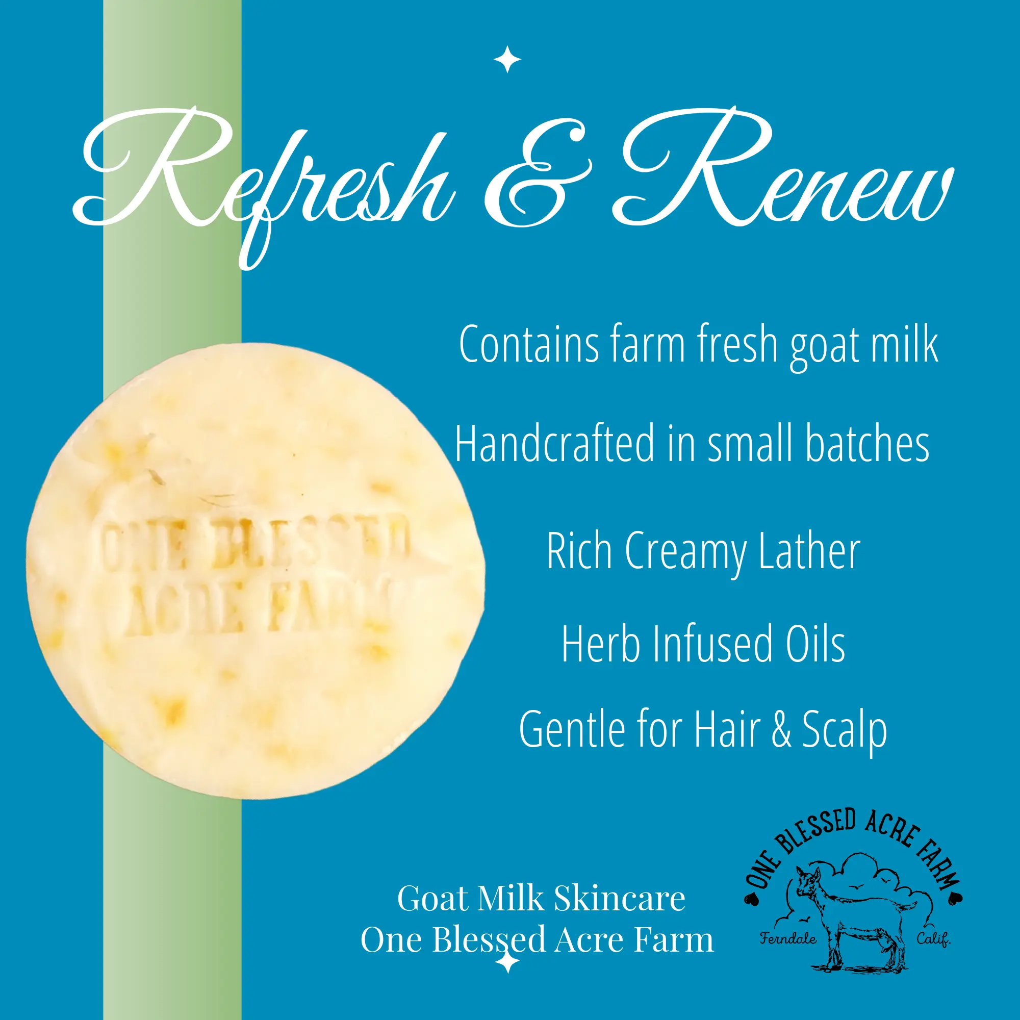 • Natural goat milk shampoo bar for dry or sensitive scalp