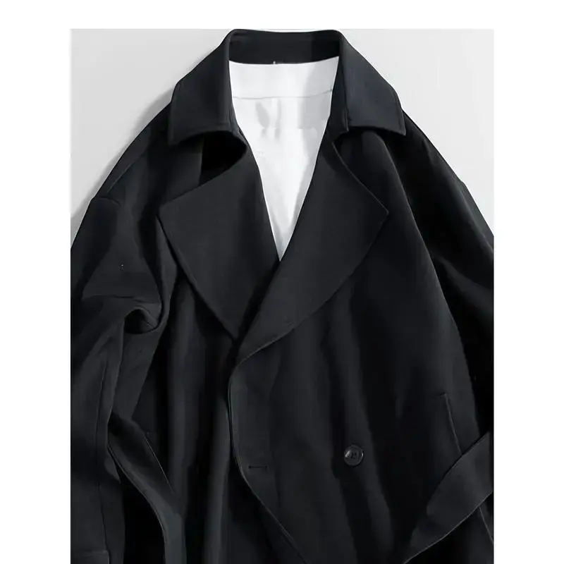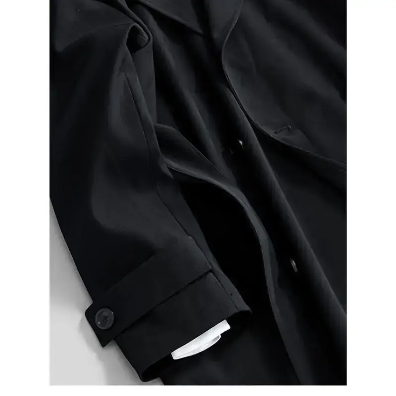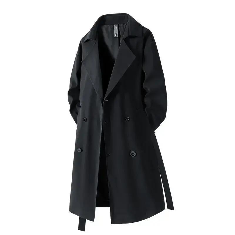 [Vintage-Inspired Trench Coat] Vintage-Inspired Men's Double-Breasted Trench Coat - Elegant, Long Sleeve, Mid-Length Windbreaker with Belt Detail - Versatile & Casual for Spring/Fall Outdoor and Daily Wear
