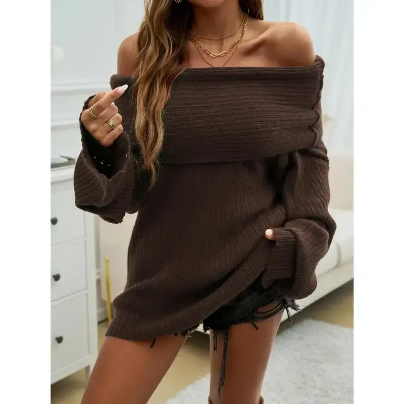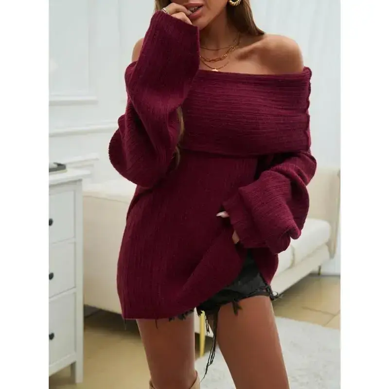 Folklore Off-Shoulder Extra-Long Sleeve Sweater