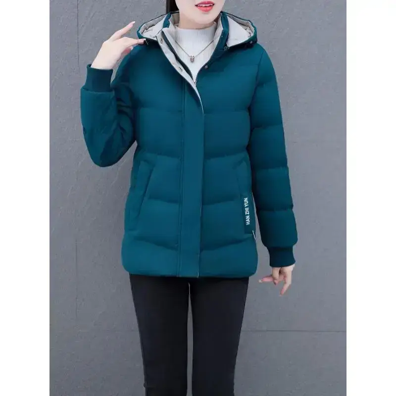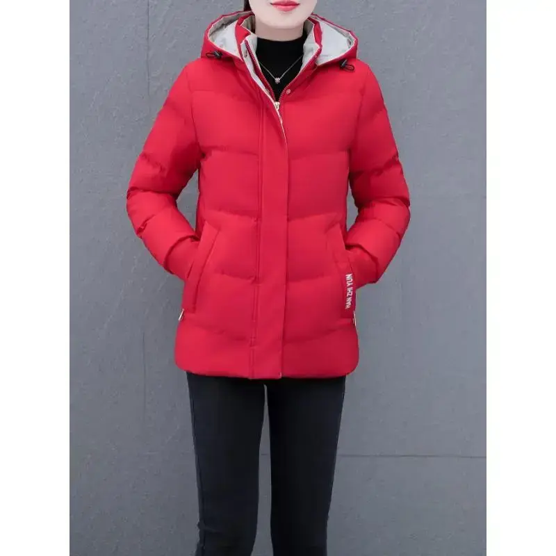 Women's Winter Puffer Jacket with Long Sleeves Zipper Slant Pockets Hoodie for Daily Wear