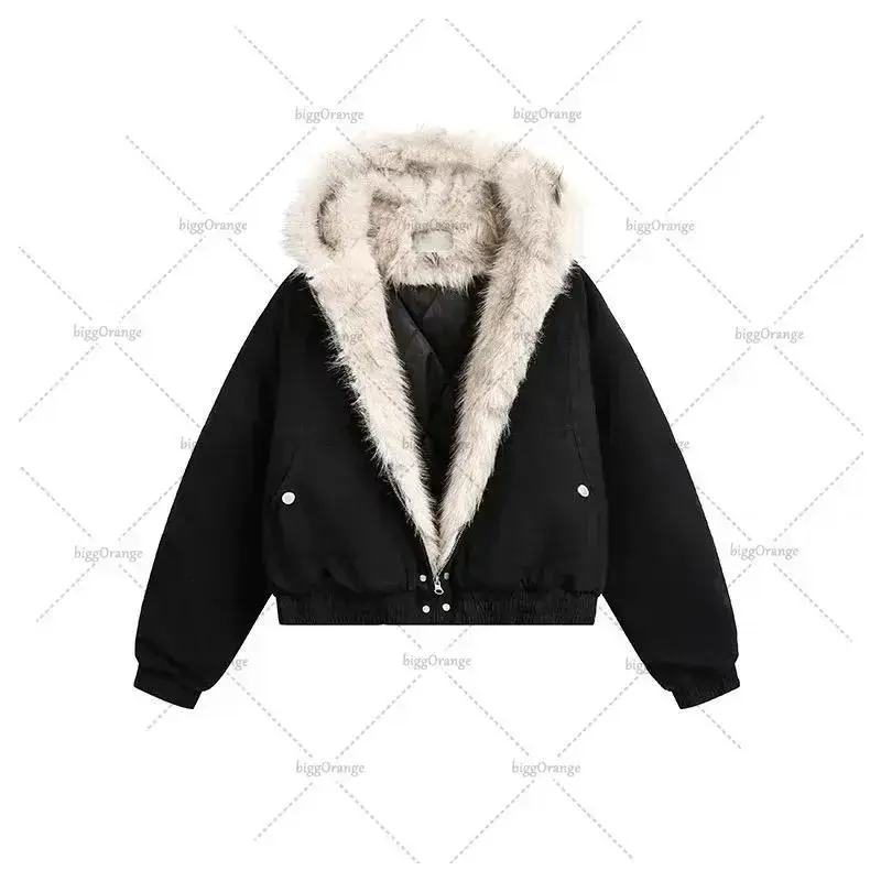 Women's jackets and windbreakers, high street fashion Y2K streetwear, Harajuku retro leather collar bomb jacket, men's hip-hop loose casual warm jacket, women's tops, basic fit
