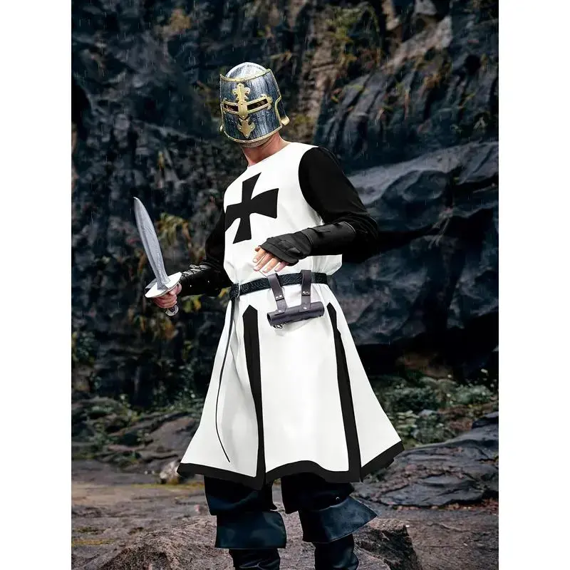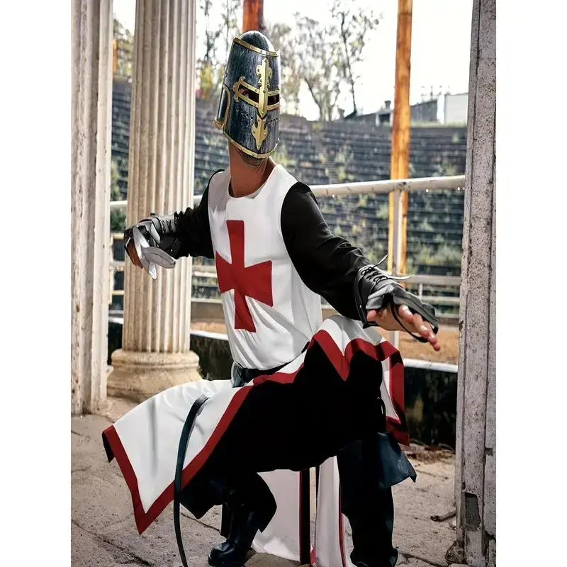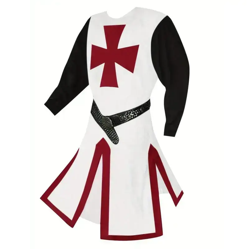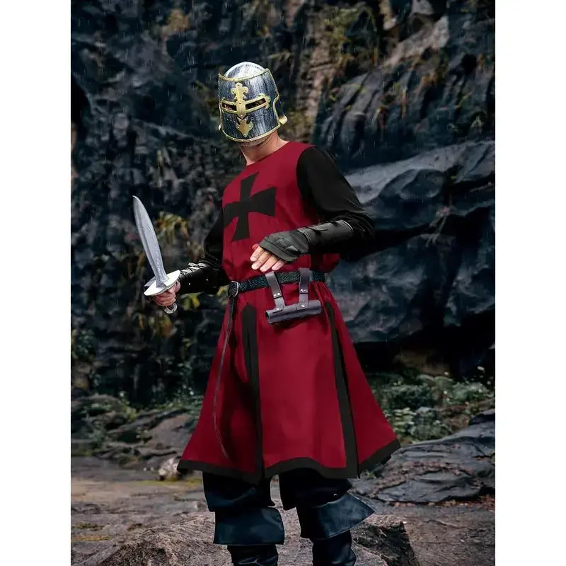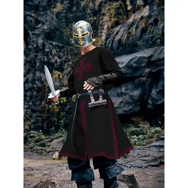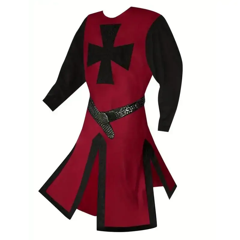 Men'S Crusader Tunic Costume - Medieval Templar Knight Long Sleeve p with Red Cruciform, Black & Red Design, Loose Fit for Christmas Cosplay, Renaissance Fairs, and Casual Wear, Cosplay Costume| Templar Knight Outfit| Detailed Texture, Cosplay-T Maid nail