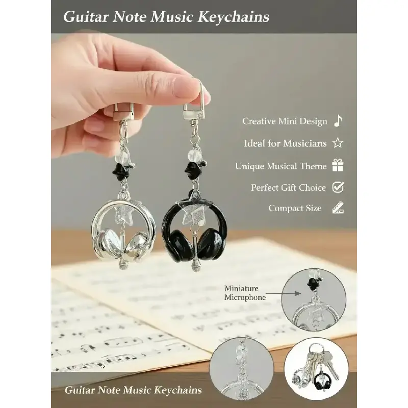 Creative Mini Music Earphone Keychain, Guitar Note Design, Unique Musical Accessory, Perfect Gift for Musicians & Music Lovers