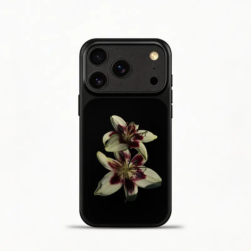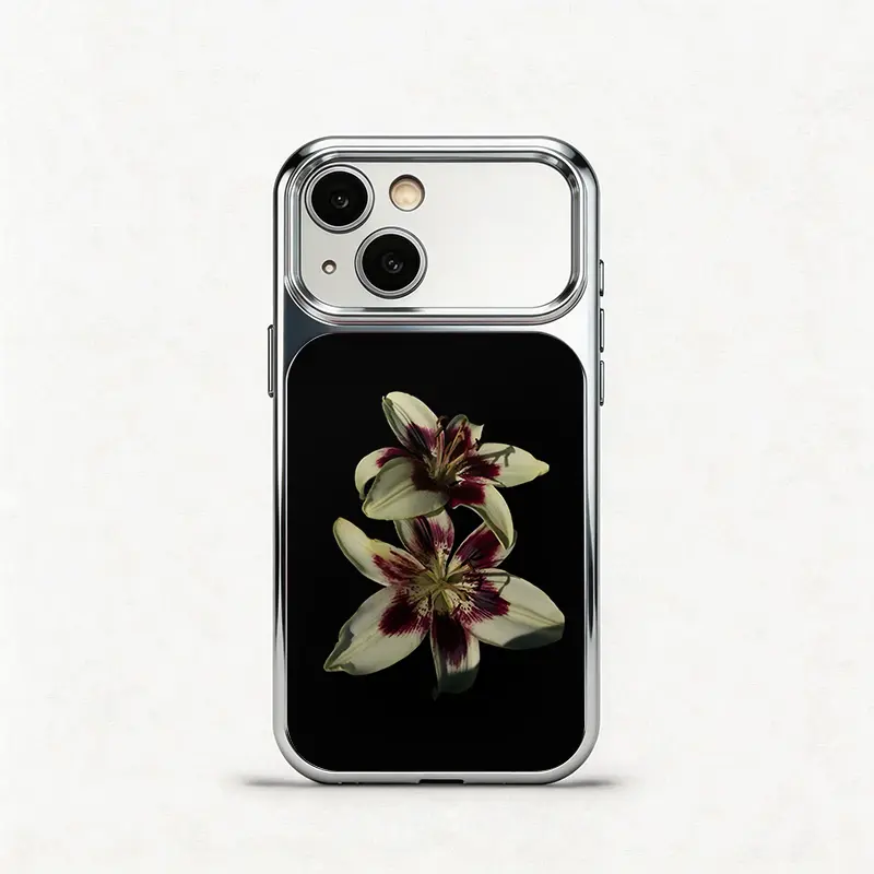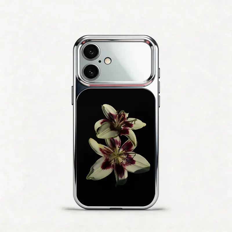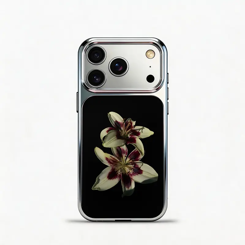 5. Glass Shockproof Electroplated Silver/Black Black Lily of the Valley iPhone 17ProMax Cover Precise Hole Alignment For Lens Frame 15ProMax Anti-yellow | 14ProMax Anti-fall | 13ProMax Ultra-thin Design 16ProMax AirPhoneCase
