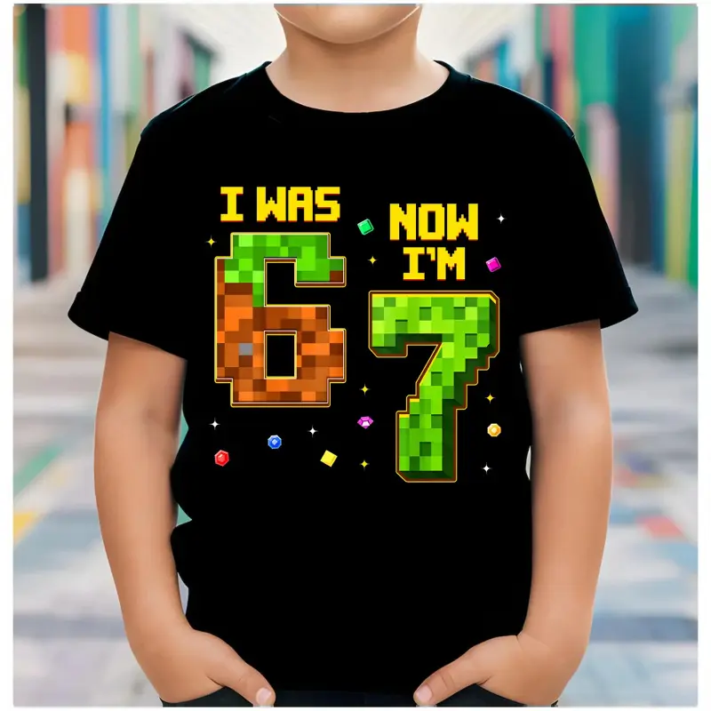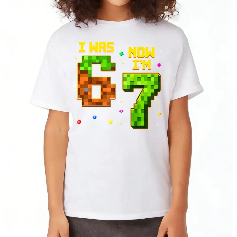 5. 100% Cotton Youth 7 Year Old Birthday I Was 6 Now I'm 7 Six Seven Meme T-Shirt, Pixel Meme Gamer Graphic Tee for Birthday