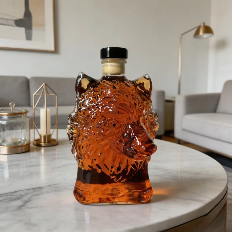 A wolf-shaped whisky bottle decoration, an empty whisky bottle, bar decoration, whisky lover, gift for father, tableware