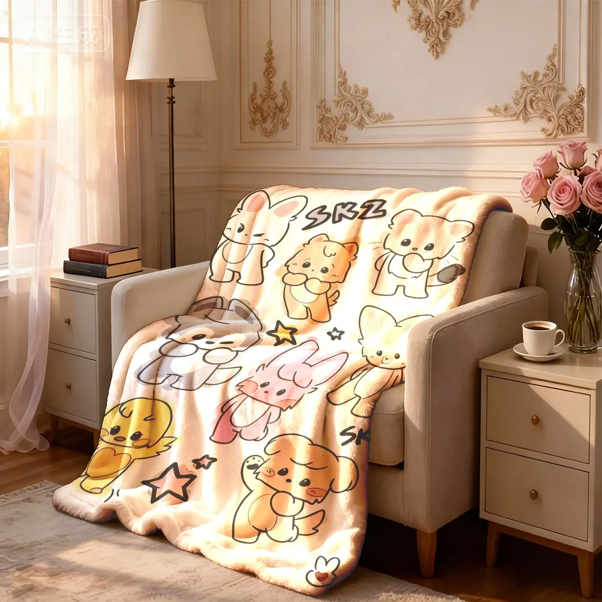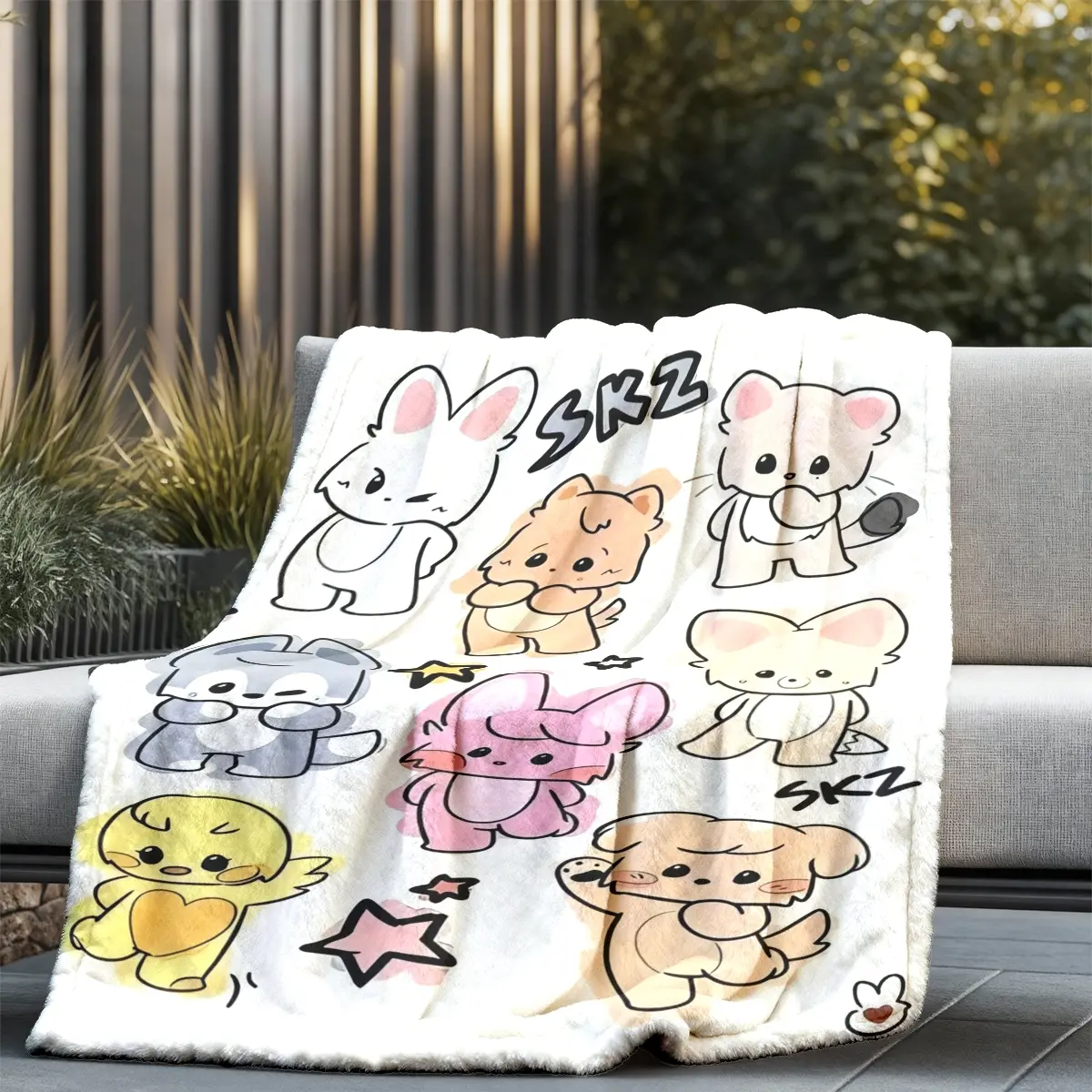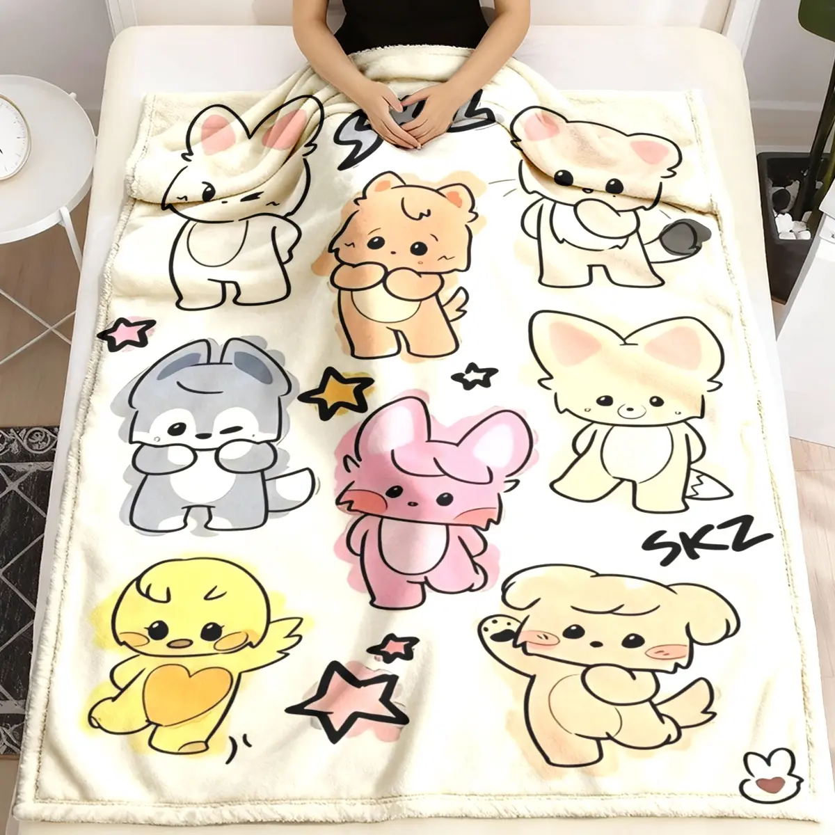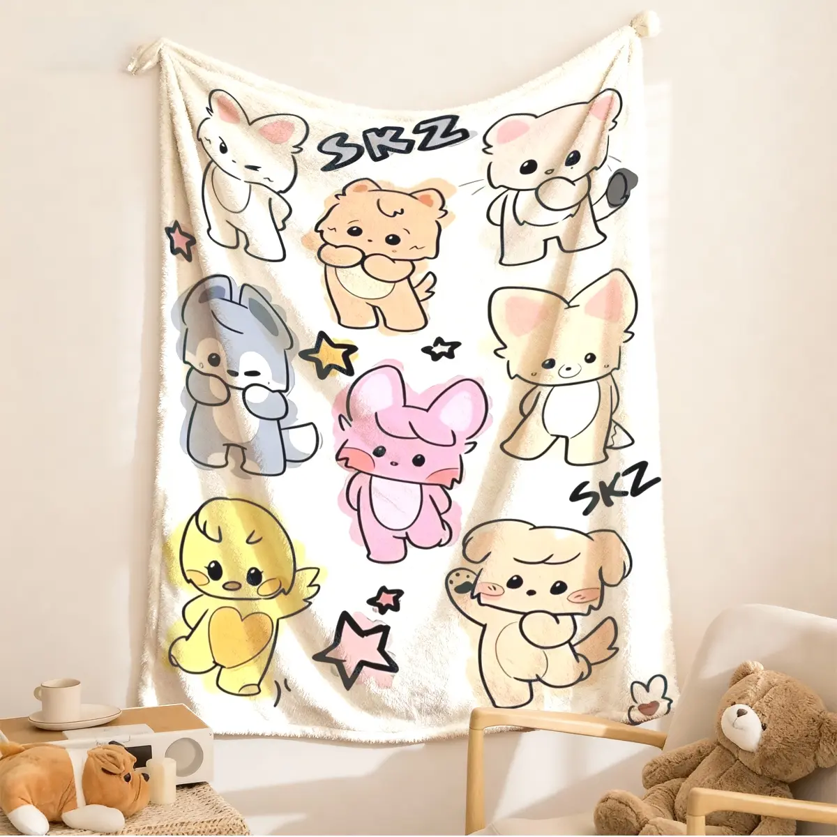 Skz Cute Animal Theme Flannel Blanket, Large Size, Soft Lightweight Warm, Perfect for Bed Sofa Office Camping Travel, Christmas Gift