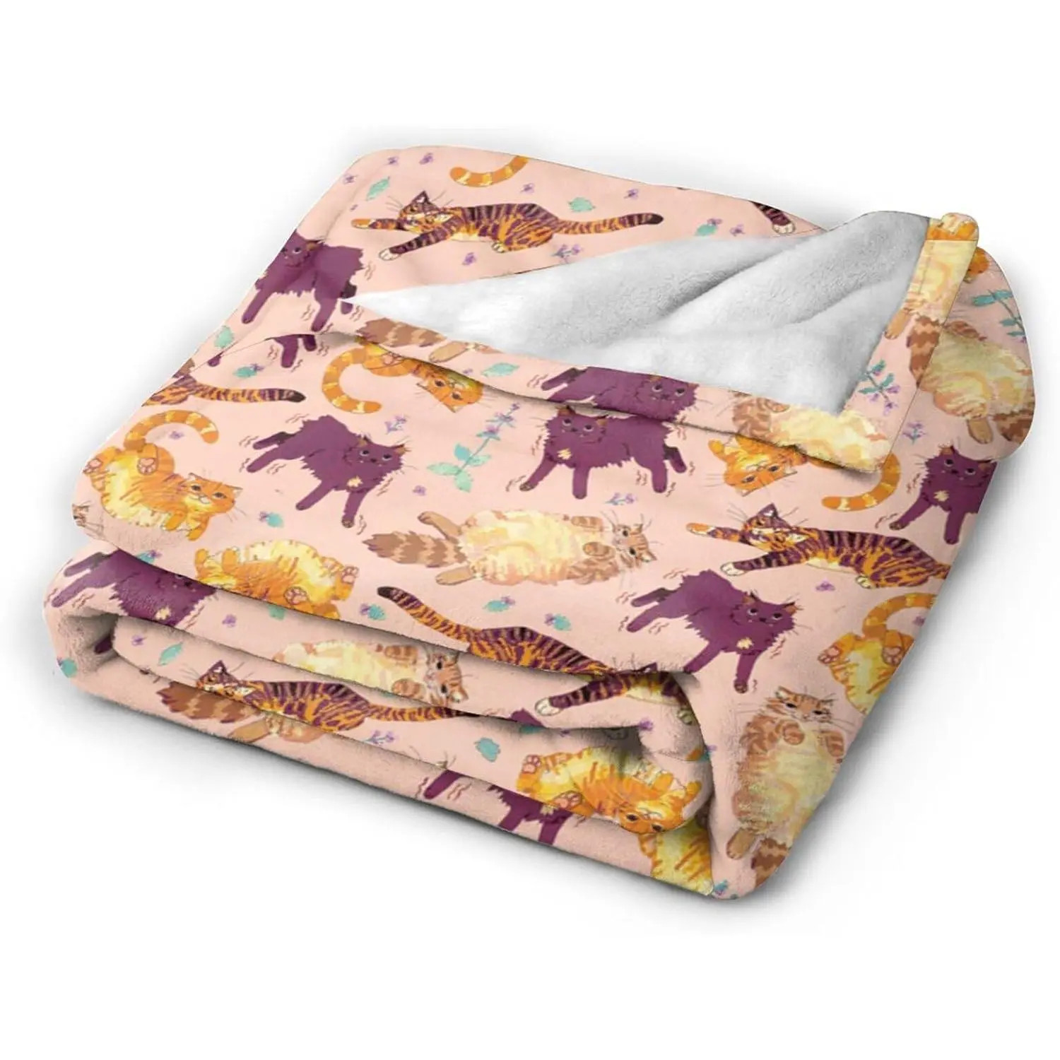 Cat Blanket, Flannel Throw Blanket, 60''x50'', Multicolor, Animal Print, Soft, Warm, Perfect for Beds, Sofas, Camping, Napping, Travel, Working