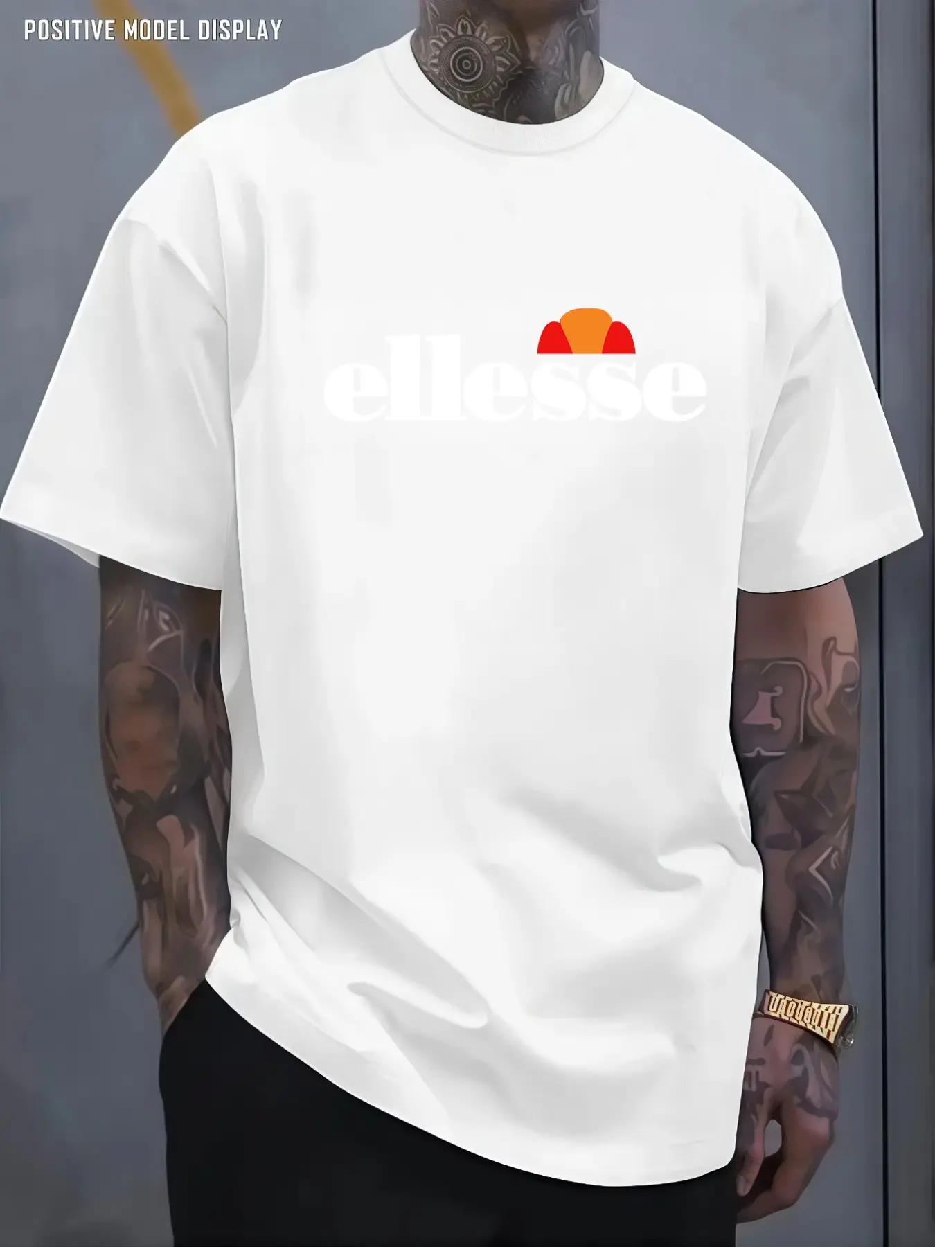 Men's Vintage Street T-Shirt, Fun Letter Ellesse Pattern Print, Loose Round Neck, Lightweight Comfort, Casual Wear for All Seasons