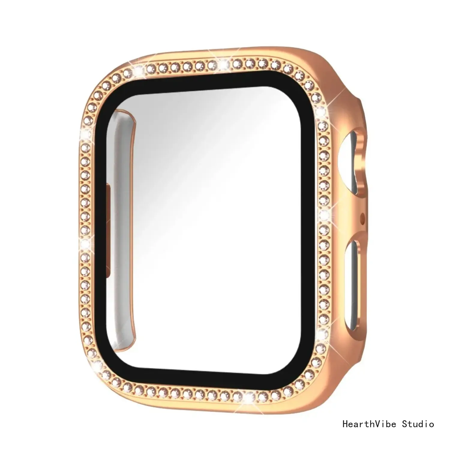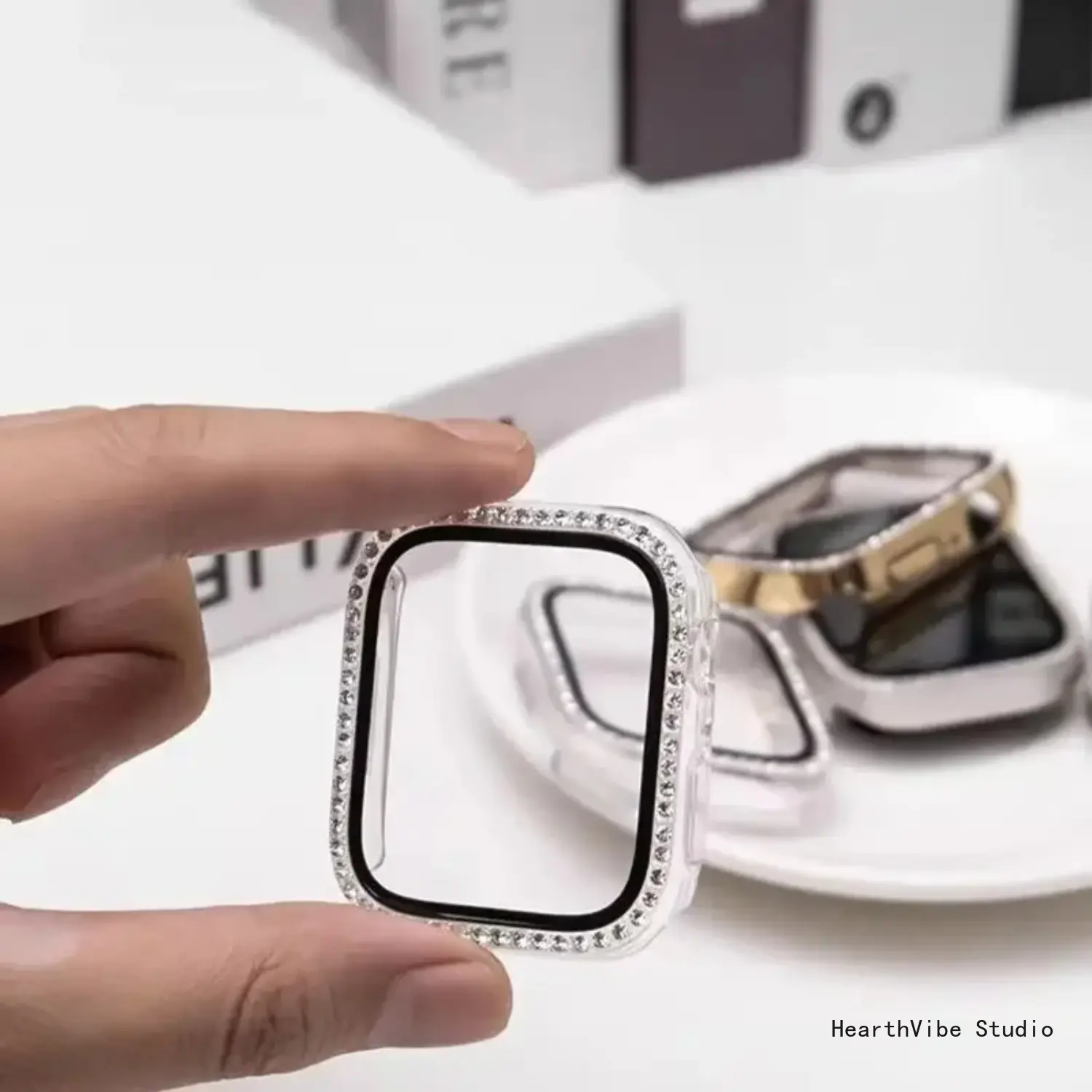 Diamond Case For Apple watch series 10 9 8 7 6 5 4 se 46mm 42mm 44mm-40-41-45mm Glass+Bling Bumper Screen Protector Accessories
