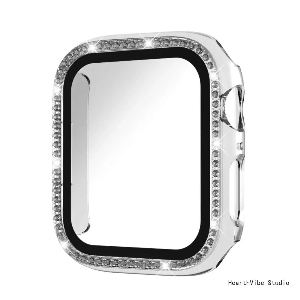 Glass+Diamond Cover For Apple watch case 46mm 44mm 42-41mm 45mm 40mm Bling Bumper Protector iWatch series 10 9 8 7 6 5 4 se case