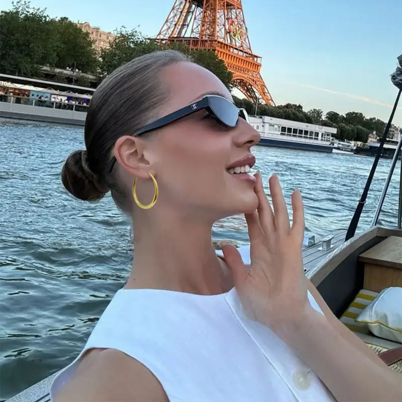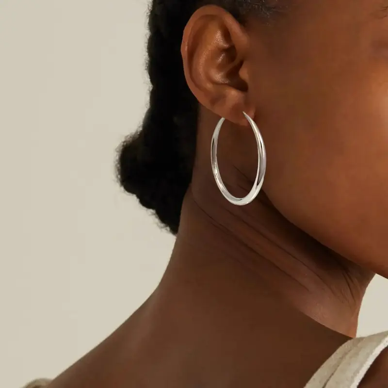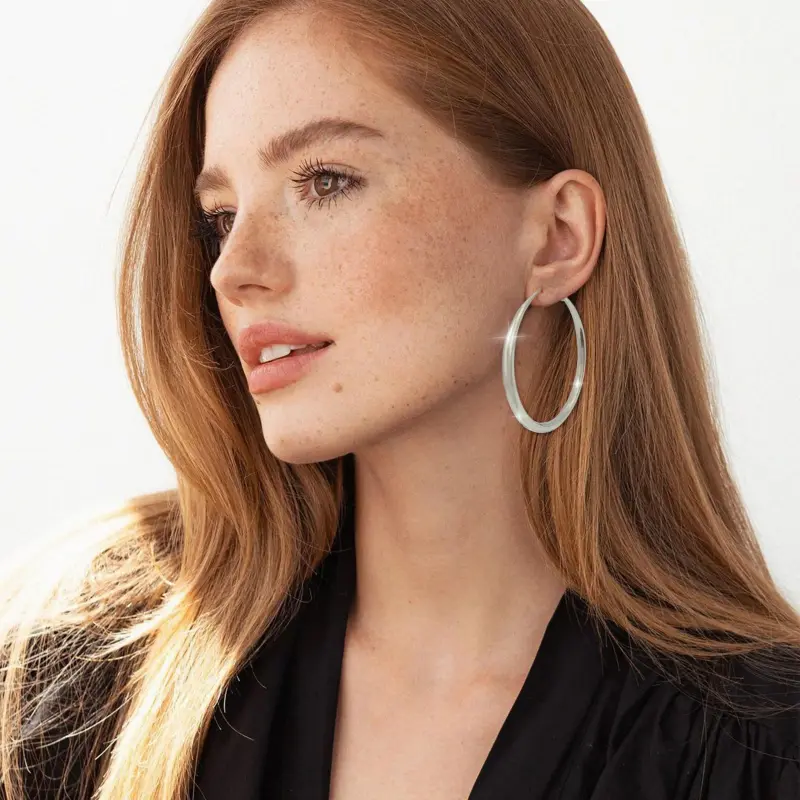 These Gold Silver Hoop Earrings are designed to complement various face shapes. Available in sizes 30mm, 40mm, 50mm, and 60mm, they offer a lightweight, comfortable fit. Made from hypoallergenic, nickel-free, and lead-free materials, these earrings are perfect for daily wear. The sturdy, flexible clasp ensures a secure fit.