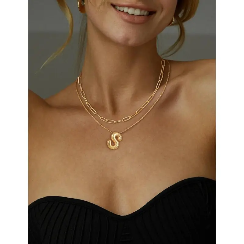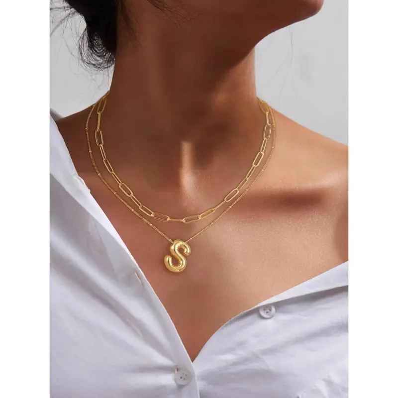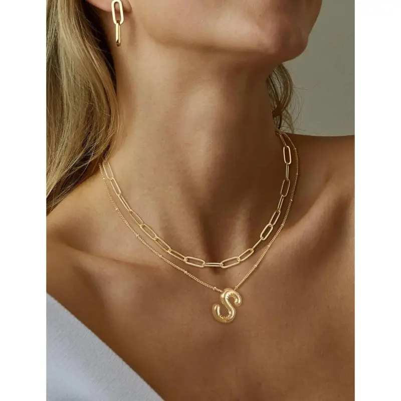 Elevate your style with the Bubble Letter Necklace.This trendy, dainty initial necklace is perfect for layering.Ideal as a personalized gift, it's a fashionable accessory for any occasion.The necklace features a modern design, making it versatile for various outfits.Add it to your collection today!