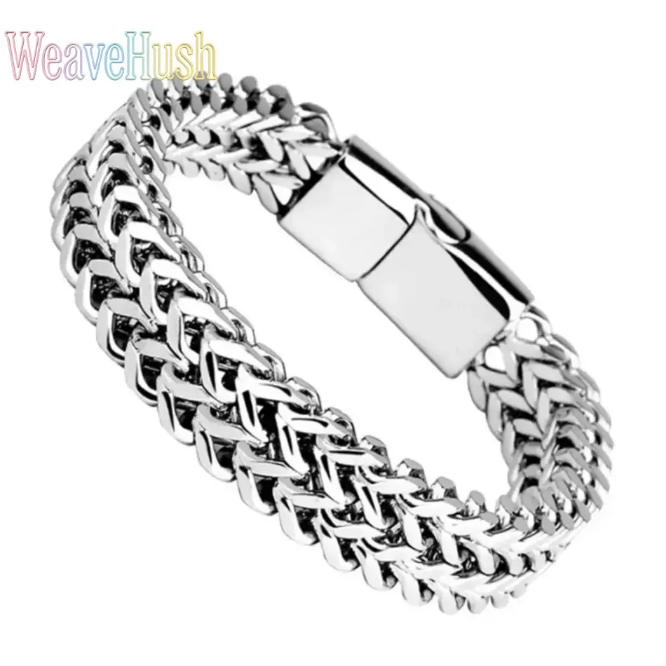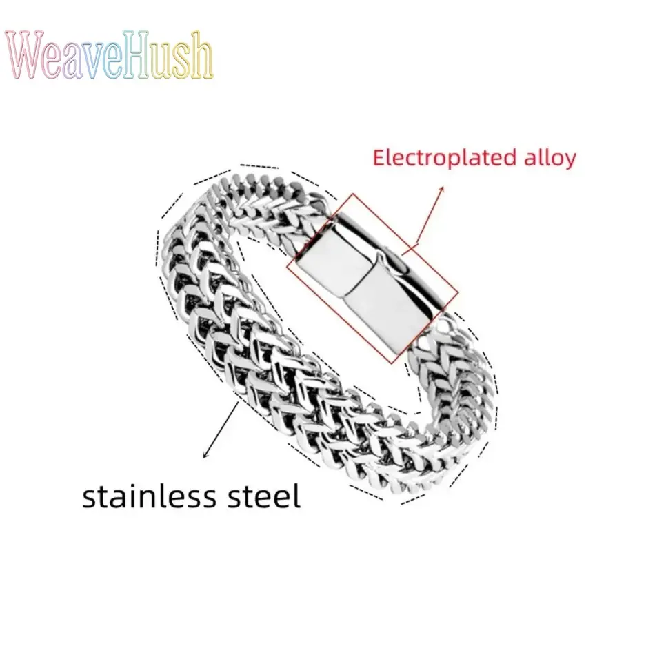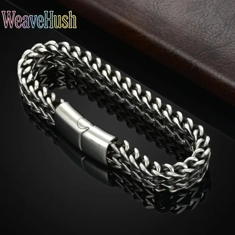 New Design Stainless Steel Braided Double Row Bracelet, Fish Scale & Keel Style Alloy Wristband with Magnetic Buckle, Fashionable Men Women Punk Style Jewelry, Durable Waterproof Daily Wear Bracelet for Street Style, Parties, Gifts & Everyday Fashion Stat