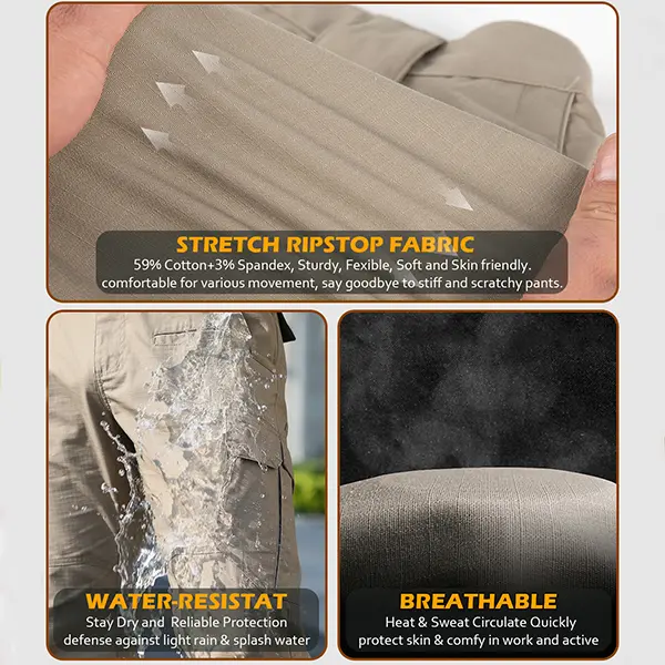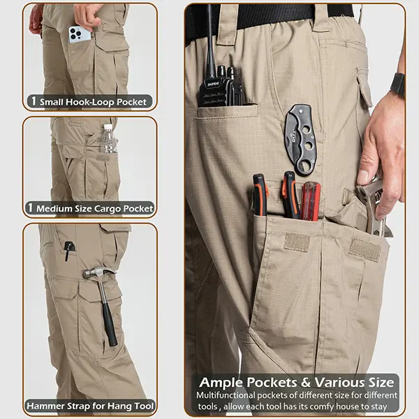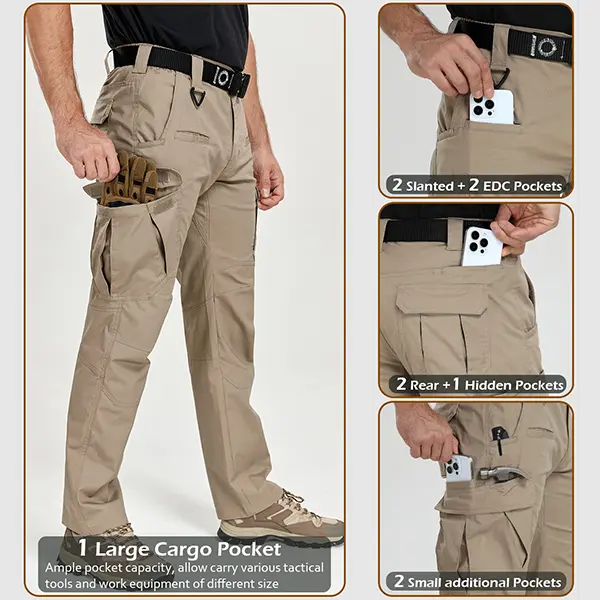 CARWORNIC Men's Stretch Ripstop Tactical Pants 12 Pockets Water-Resistant Flex EDC Utility Work Cargo Pants Lightweight Outdoor Hiking Pants