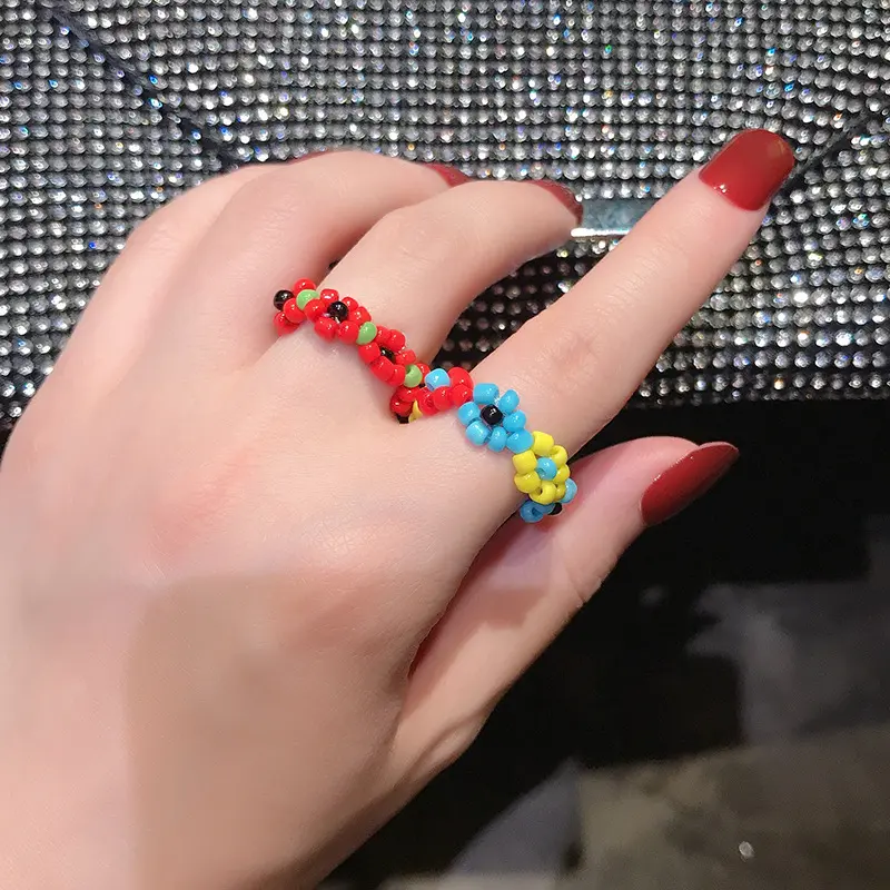 Elevate your playful style with these handcrafted beaded flower rings! Made from vibrant, high-quality glass beads, each ring features a cute 3D flower design in bright, eye-catching color combinations. Lightweight and comfortable, they fit most finger sizes, perfect for daily wear, Y2K fashion, summer outfits, and as a fun gift for teens and girls. A trendy, nostalgic accessory to add a pop of color to any look.