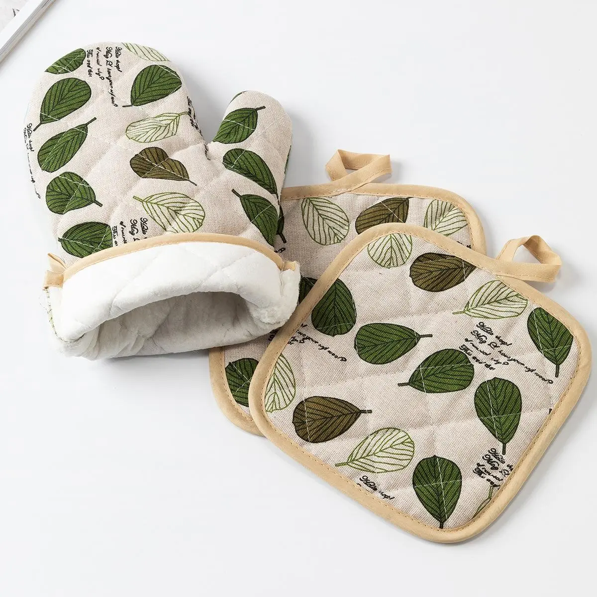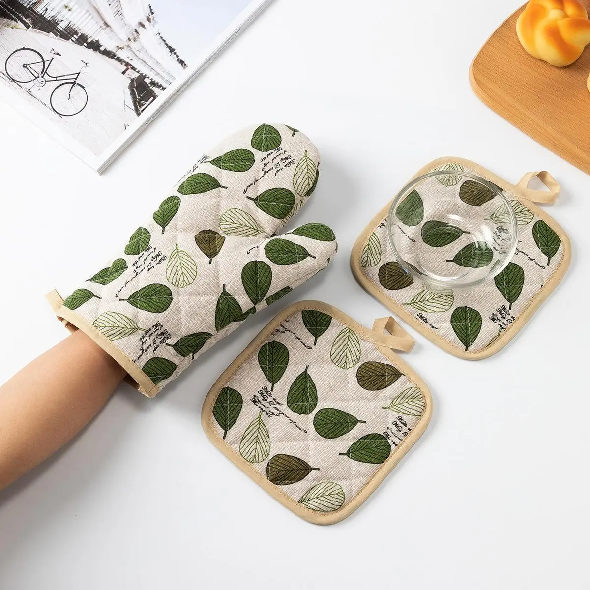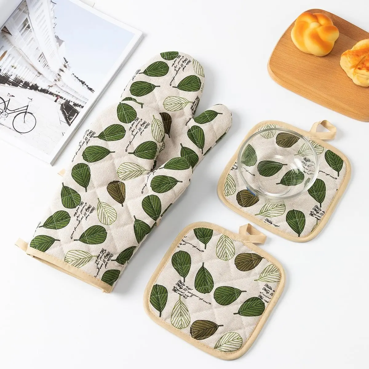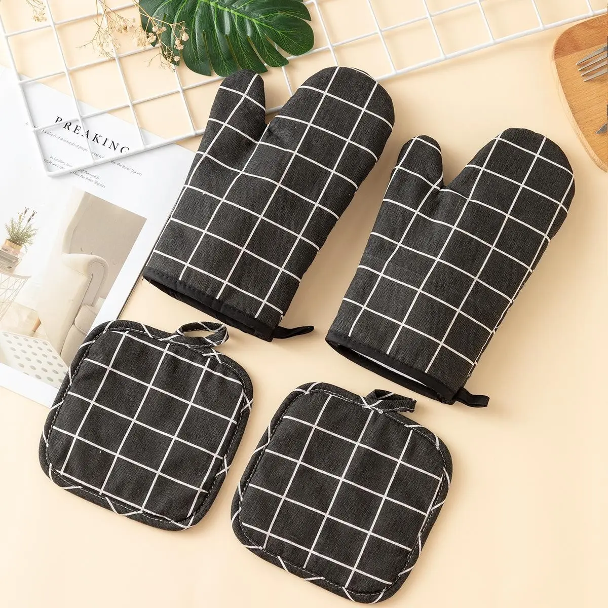 【4-Piece Set】: This set includes four pieces: two oven mitts and two pot holders, providing comprehensive kitchen protection.