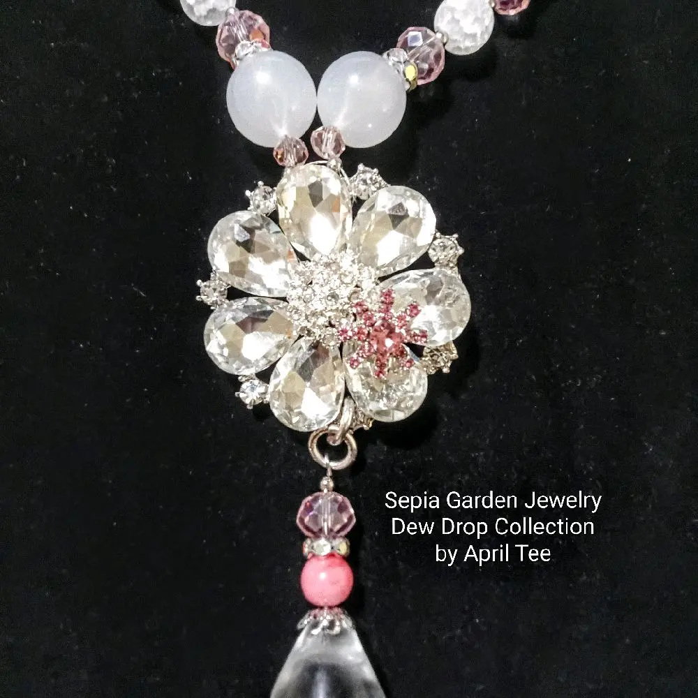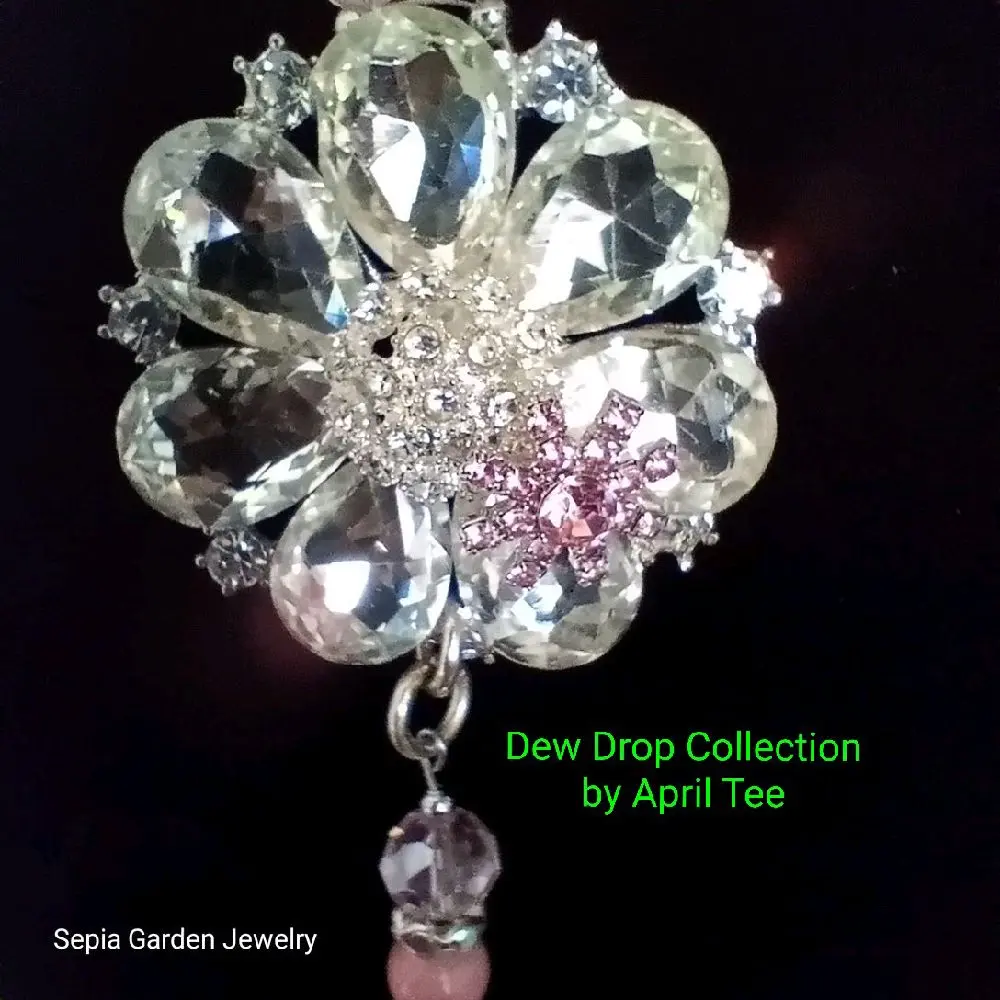 Rhinestone Flower Featuring A Dew Drop Pendant from the Dew Drop Collection Handmade by April Tee