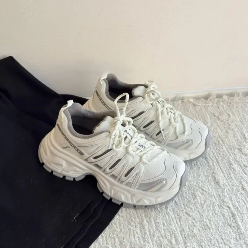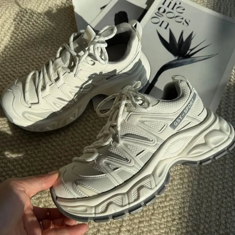 2026 Genuine Leather Mesh Breathable Thick-Soled Dad Shoes for Women, Spring Season, Height-Increasing, Makes Feet Look Smaller, Sneakers, Running Shoes, Unisex