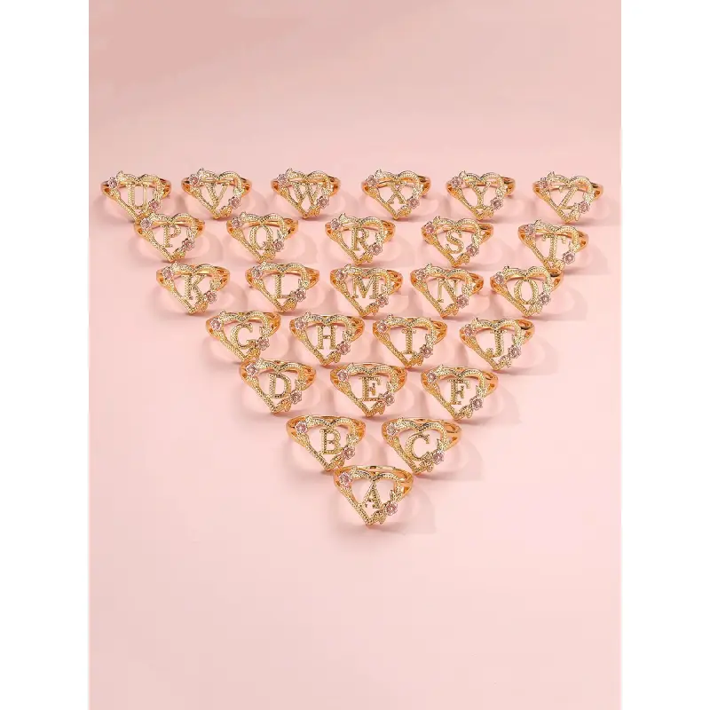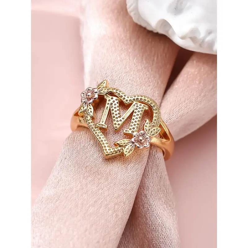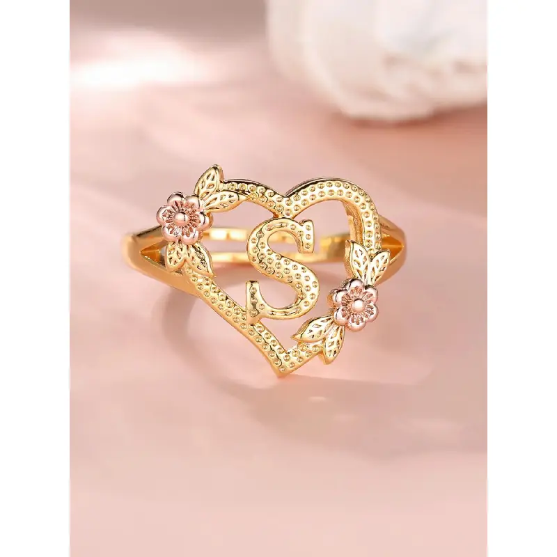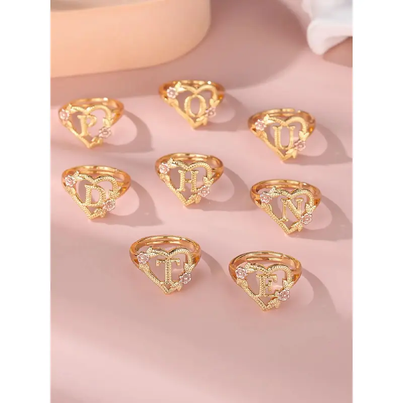 2024 Fashion Flower & Heart Design Ring for Girlfriend, Alphabet Design Ring for Women, Unique Rings Jewelry for Girlfriend for Back To School Fall, Valentine's Day, Statement Ring, Jewelry Gifts, Personalized Jewelry, Adjustable Initial Rings