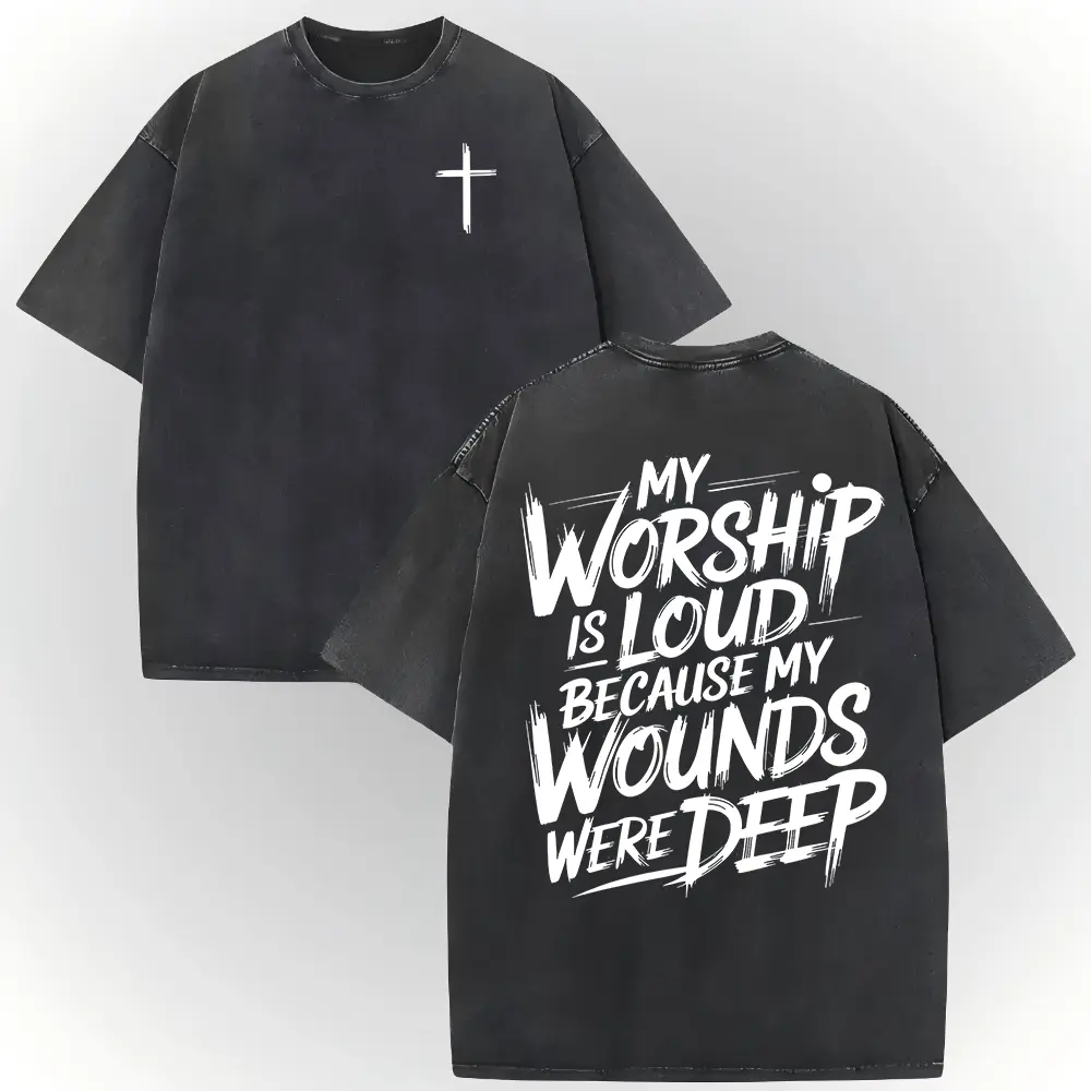 My Worship Is Loud Because My Wounds Were Deep Unisex Washed Christian Shirt, Christian Scripture T-Shirt, Vintage Retro Washed Shirt Double Sided Printed