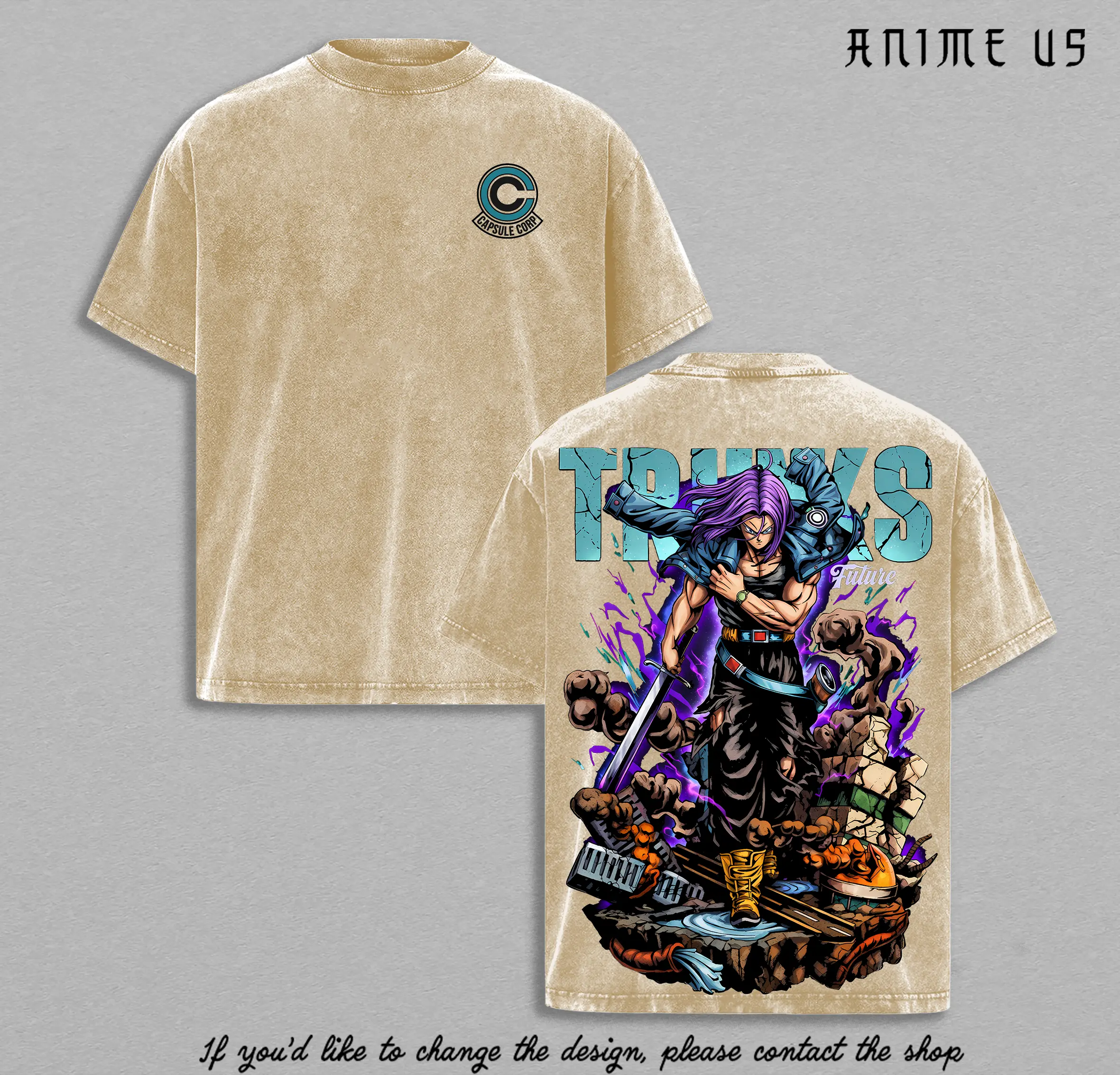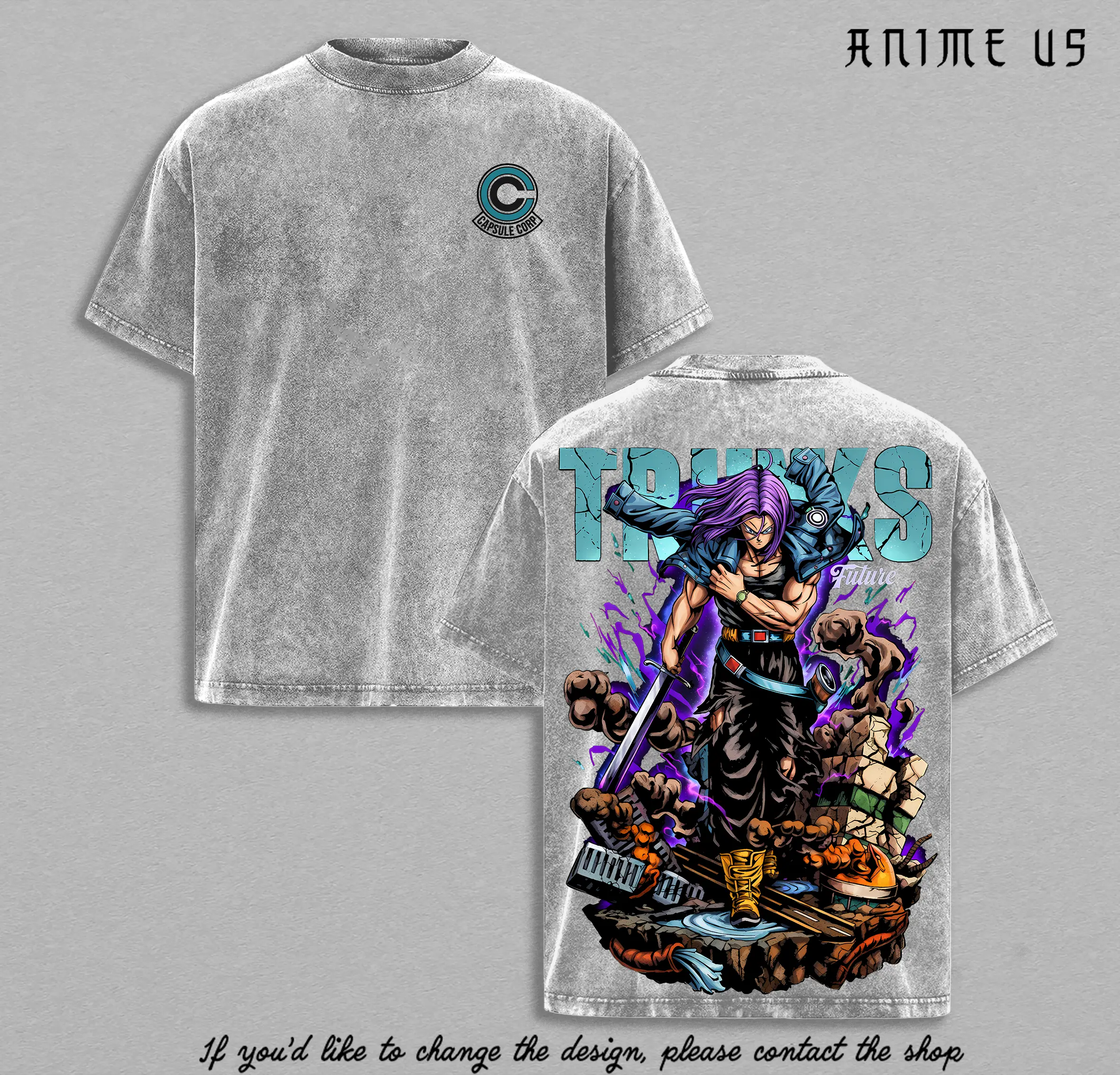 Future T.R.U.N.K.S Shirt DBZ Anime Capsule Corp Warrior Vintage Washed Oversized Tee Time Traveler Saiyan Graphic
